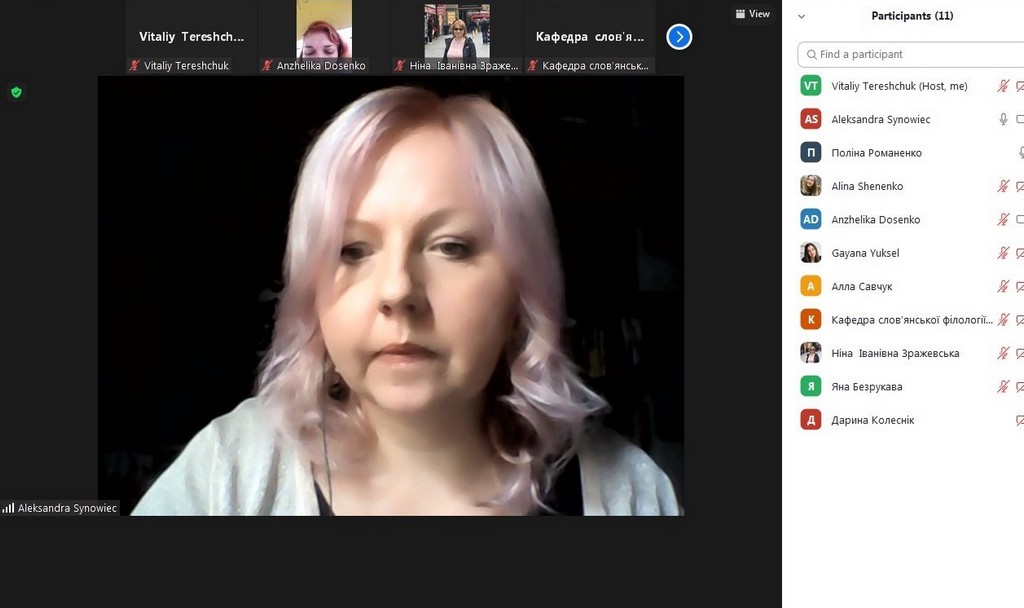 Зустріч пані Олександра розпочала зі звернення до учасників українською мовою, наголосивши, що має неабиякі успіхи в її опануванні. Сама лекція проходила англійською мовою в рамках впровадження практики гостьових лекцій на кафедрі міжнародної журналістики.