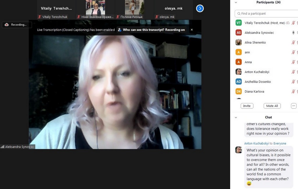 Олександра Синовець — дослідниця у галузі міжкультурних комунікацій, авторка понад 50 наукових праць, неоднократна грантова призерка — передавала свій досвід та світоглядні позиції українським студентам—майбутнім міжнародним журналістам.