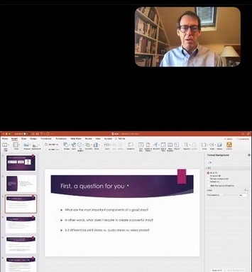 Спікер Пітер Cлевін (Peter Slevin) — професор Школи журналістики Меділл Північно-Західного університету та автор дописів для відомого видання The New Yorker. Розповідав про особливості створення журналістської історії та значення образу в ній. Понад 10 років гість працював репортером у The Washington Post та відвідав десятки країн світу та написати біографію Мішель Обами, першої леді США за каденції президента Барака Обами.
