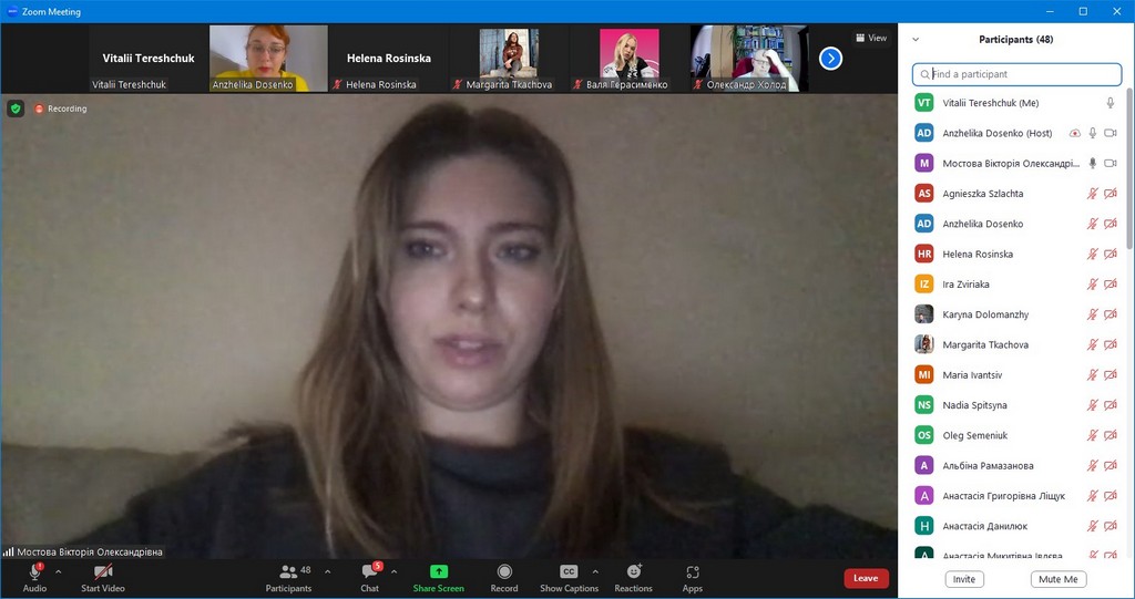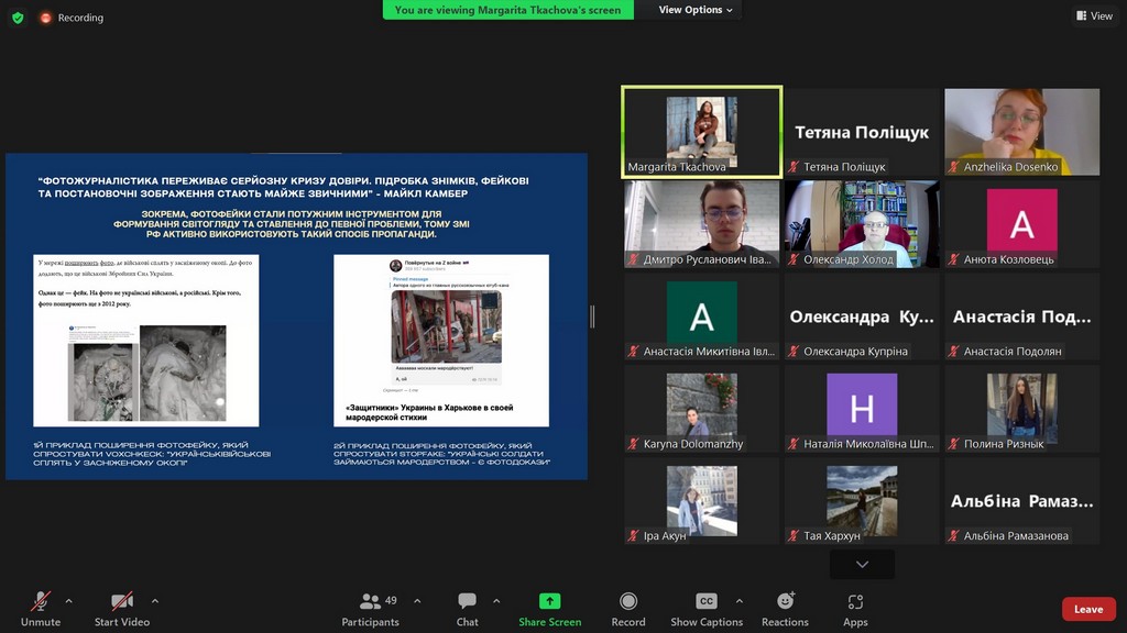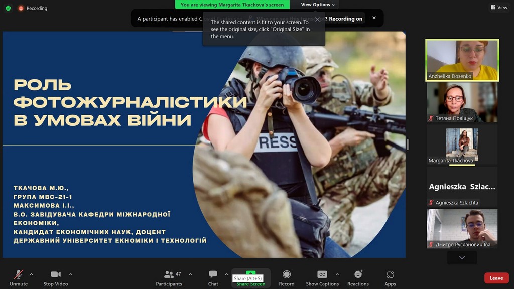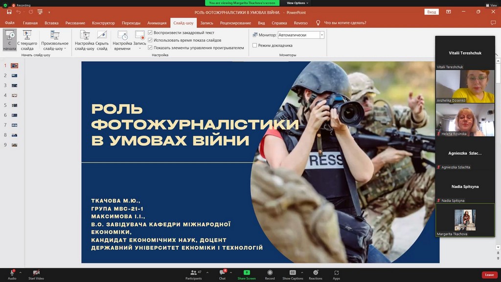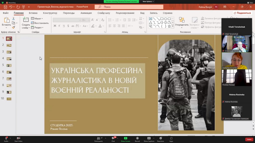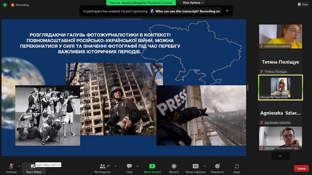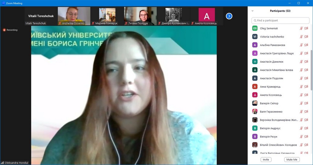 На пленарному засіданні з науковими доповідями виступали студенти з Щецинського університету (Польща) — Вікторія РИБІЦЬКА (Wiktoria Rybicka) та Надія СПІЦИНА (Nadiia Spitsyna), та студенти з вітчизняних ЗВО — Марина ГОНЧАРУК (Київський національний університет культури і мистецтв) та Юлія ТОПЧІЙ (Київський університет імені Бориса Грінченка, здобувачка ОП «Міжнародна журналістика»).