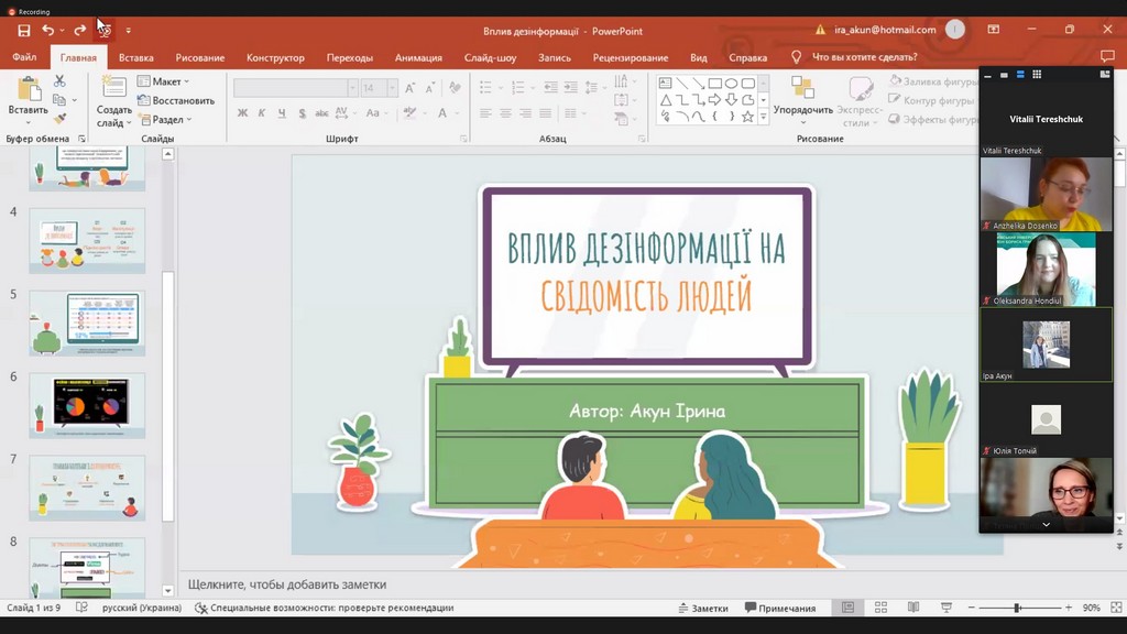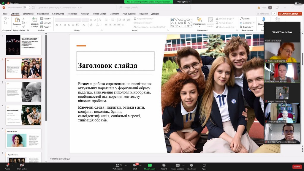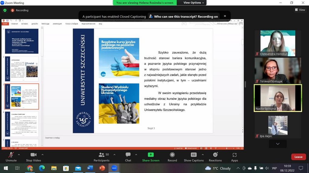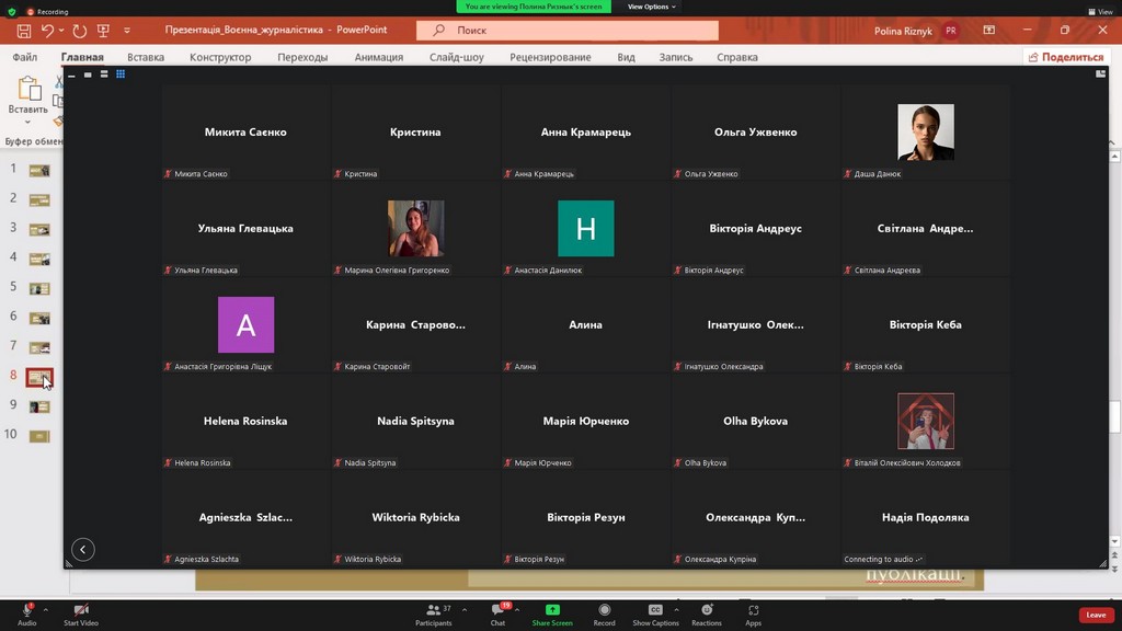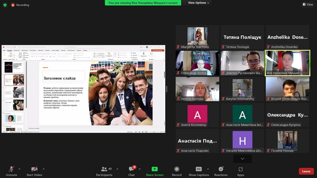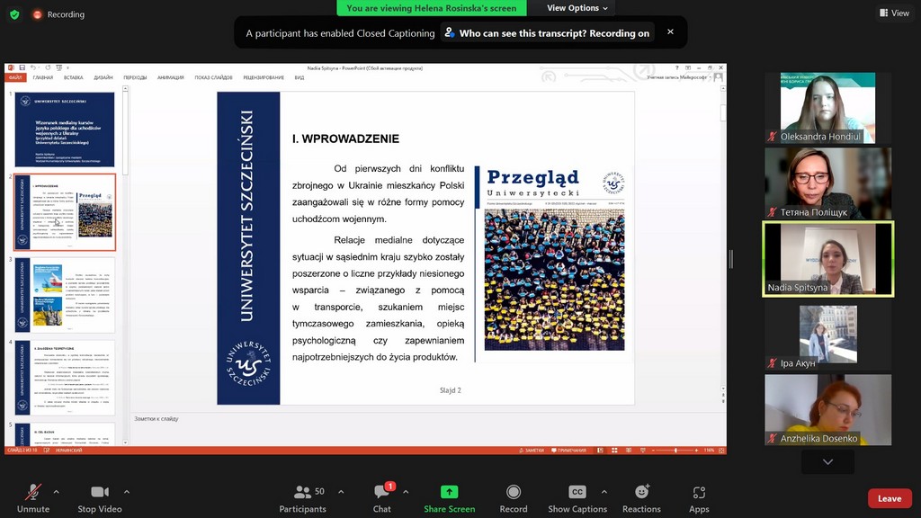 На пленарному засіданні з науковими доповідями виступали студенти з Щецинського університету (Польща) — Вікторія РИБІЦЬКА (Wiktoria Rybicka) та Надія СПІЦИНА (Nadiia Spitsyna), та студенти з вітчизняних ЗВО — Марина ГОНЧАРУК (Київський національний університет культури і мистецтв) та Юлія ТОПЧІЙ (Київський університет імені Бориса Грінченка, здобувачка ОП «Міжнародна журналістика»).