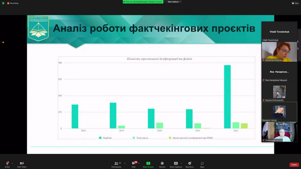 Далі робота конференції відбувалася за трьома секціями: секція 1 «Інформація та дезінформація в часи воєн та пандемій», секція 2 «Медіа світу про проблеми війни в Україні», секція 3 «Українська професійна журналістика в новій реальності: актуальні питання».