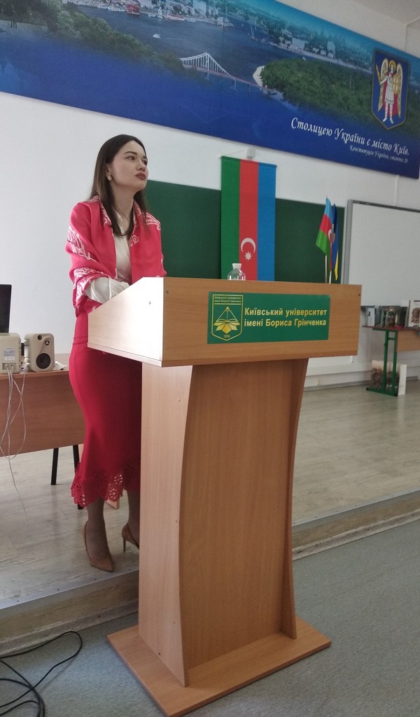 30 травня 2023 року для студентів освітньої програми «Міжнародна журналістика» Київського університету імені Бориса Грінченка проведено лекцію, в рамках якої було представлено інформацію про Азербайджан як стратегічного партнера України, історію двосторонніх відносин, а також співпрацю у сфері медіа та журналістики в умовах воєнного часу. Запрошеним спікером виступила куратор українсько-азербайджанських проектів, журналіст Марина ГОНЧАРУК.Захід відкрив вступним словом завідувач кафедри міжнародної журналістики доктор політичних наук Віталій ТЕРЕЩУК. Він розповів про важливість спілкування студентів із спеціалістами зі сфери міжнародних комунікацій, а також про актуальність вивчення українсько-азербайджанського співробітництва у сфері медіа в умовах воєнного часу.