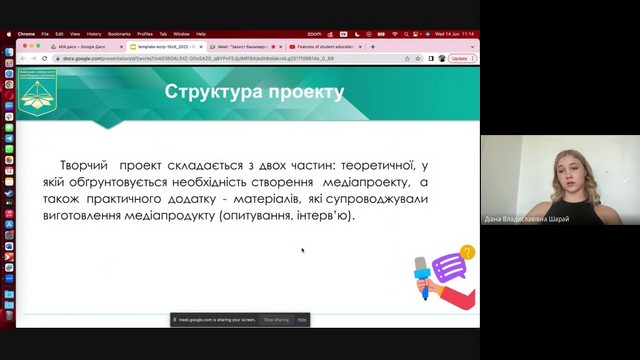Під час захисту здобувачі демонстрували підготовлені медіапродукти (проєкти), відповідали на запитання членів комісії.