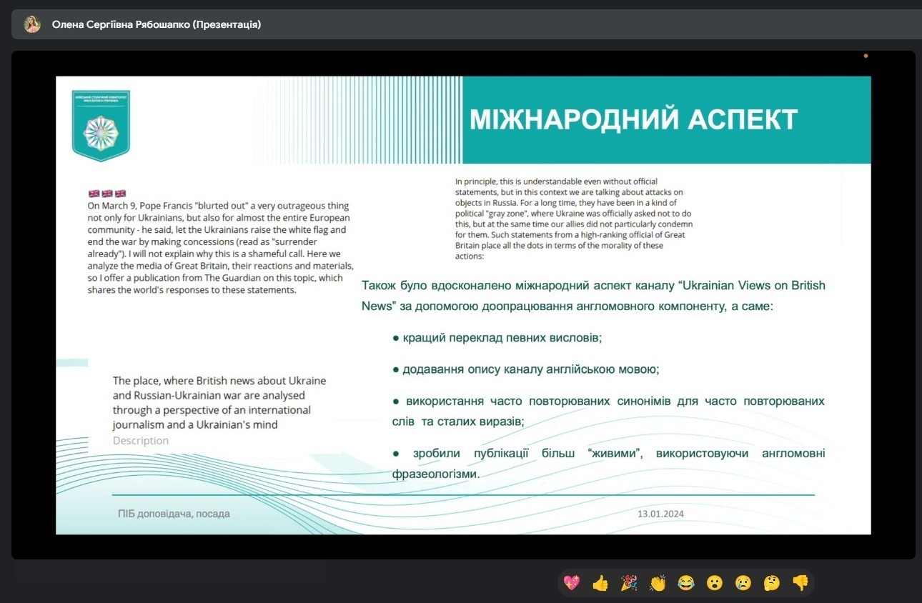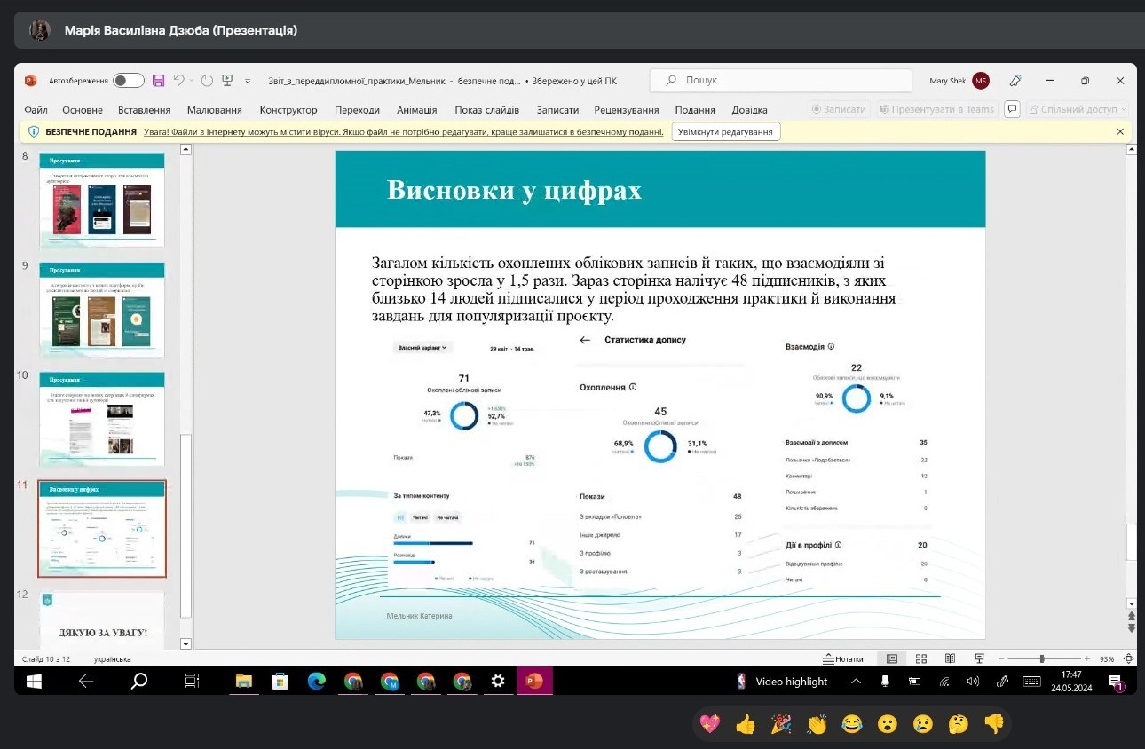 24 травня 2024 року відбулася звітна конференція з переддипломної практики здобувачів 4 курсу освітньої програми «Міжнародна журналістика».
