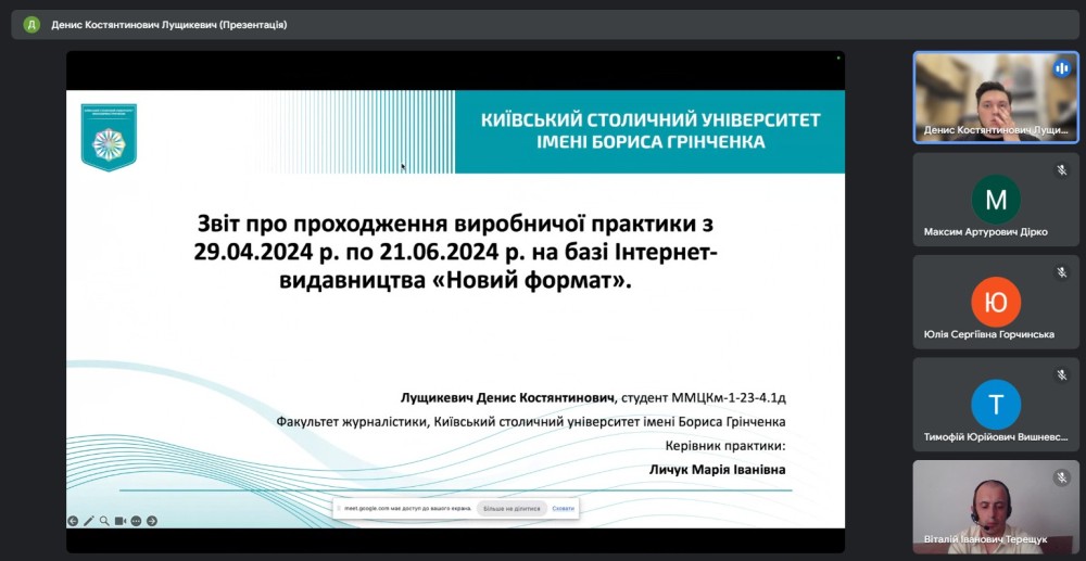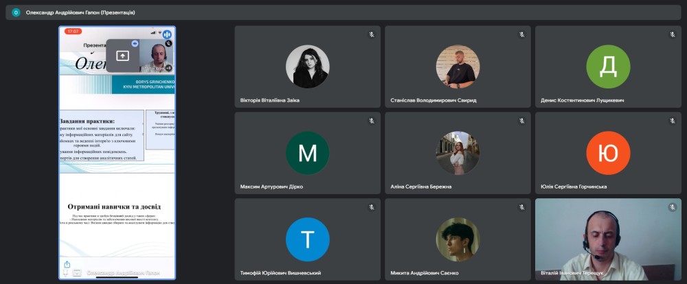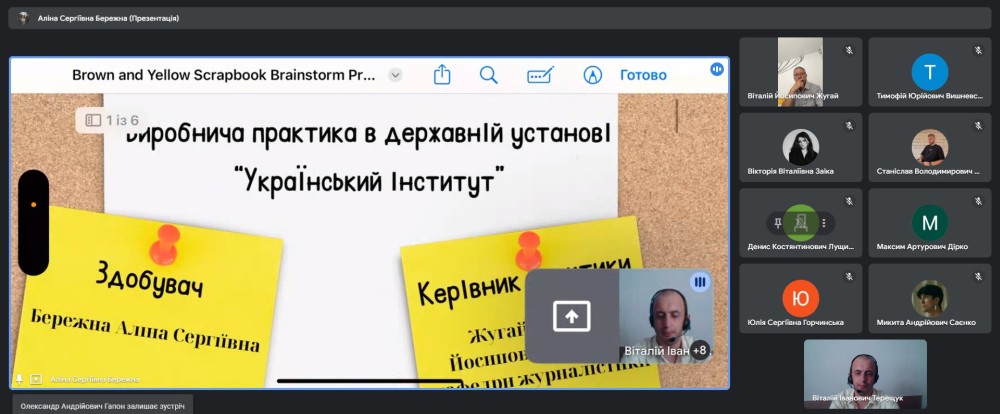 Конференція відбулася на платформі Google Meet під керівництвом завідувача кафедри міжнародної журналістики гаранта освітньої програми Віталія ТЕРЕЩУКА за участі керівників практики від університету.