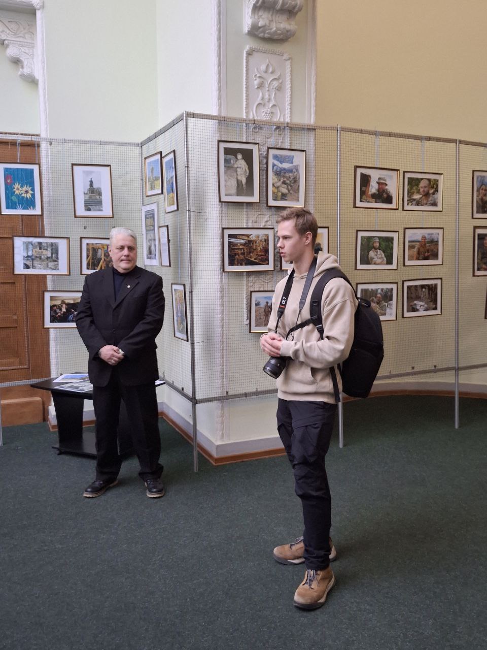 Серед авторів світлин — як професійні фотографи, так і військові, що зафіксували фронтову реальність. Офіцер ЗСУ Віктор Тімохін, один із учасників виставки, поділився досвідом і закликав молодь вірити у свої сили та підтримувати українське військо.