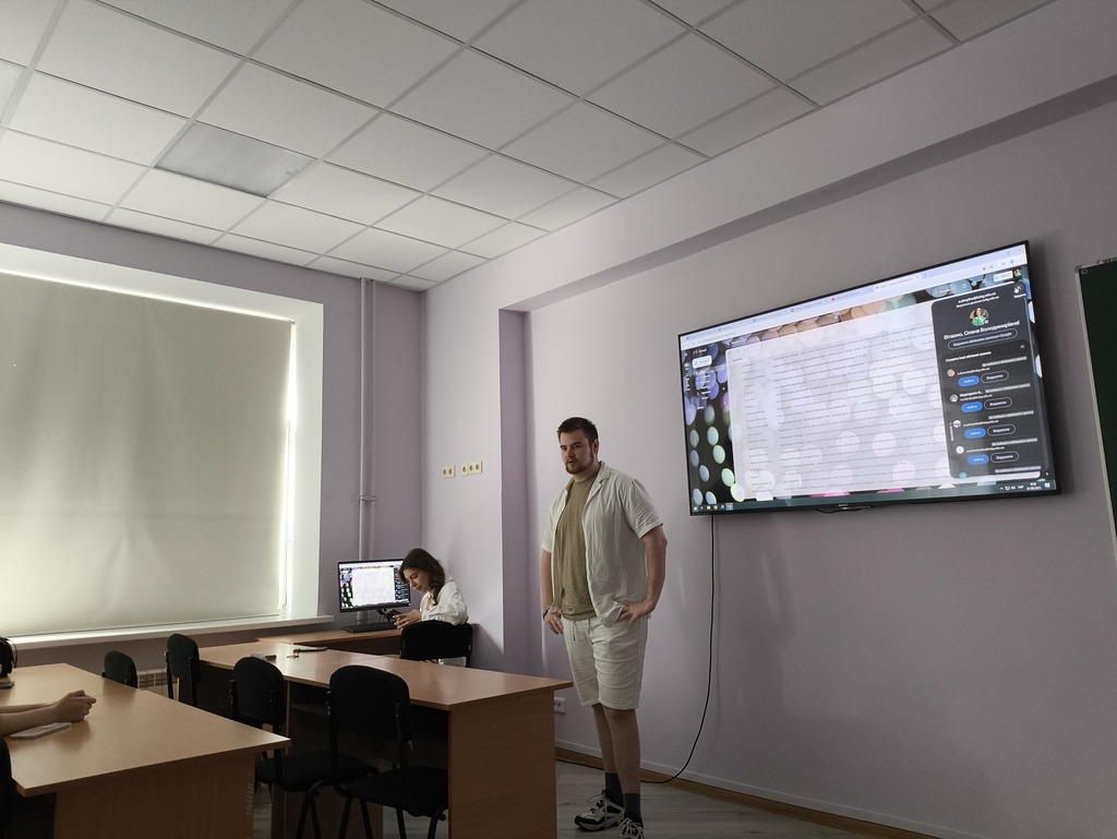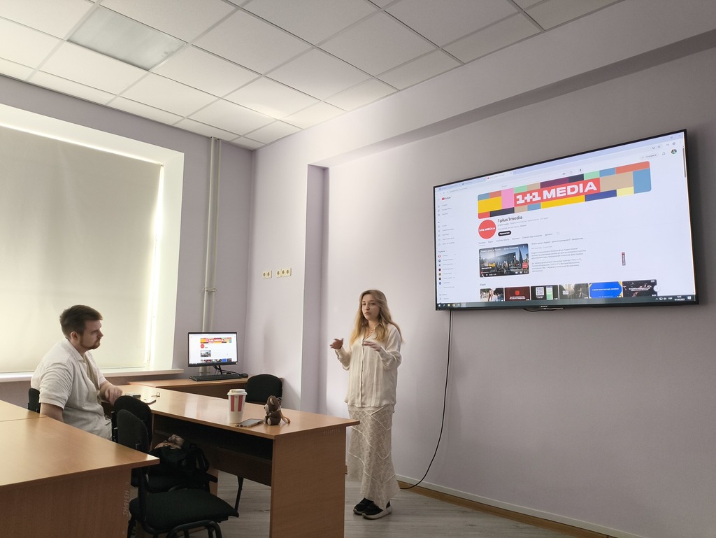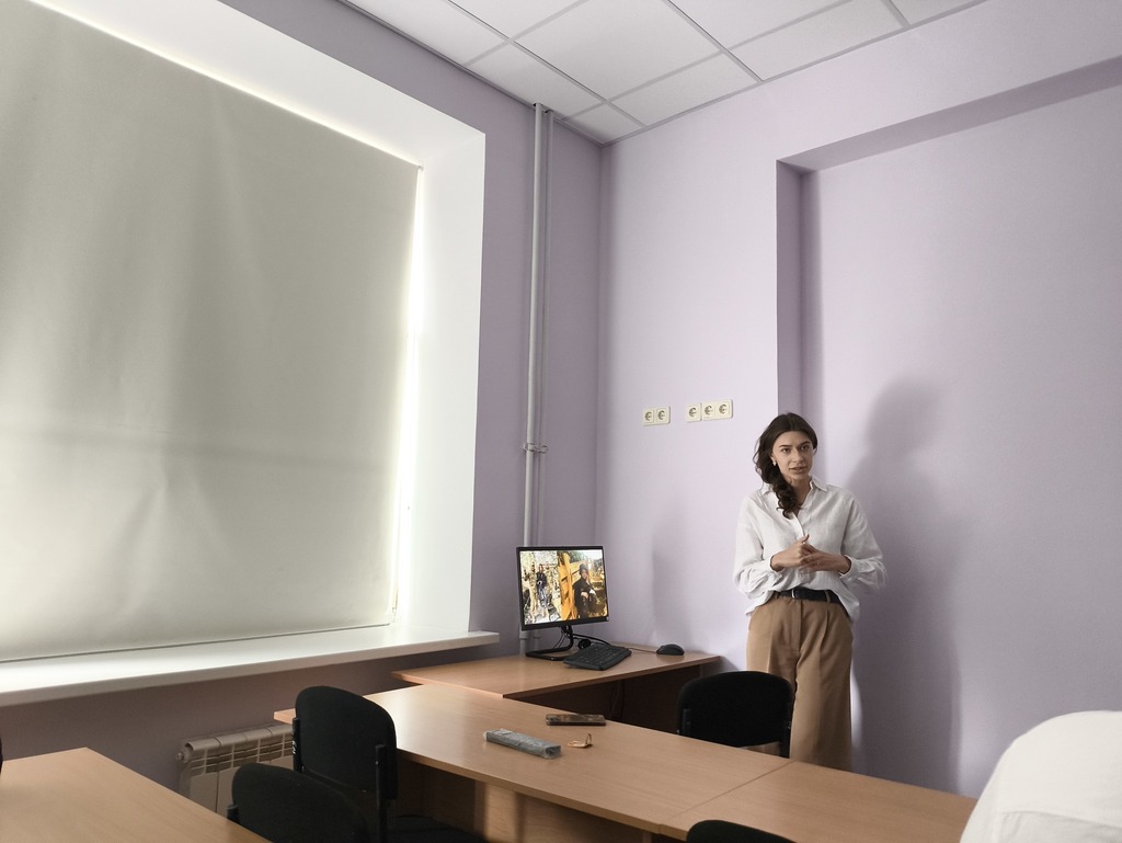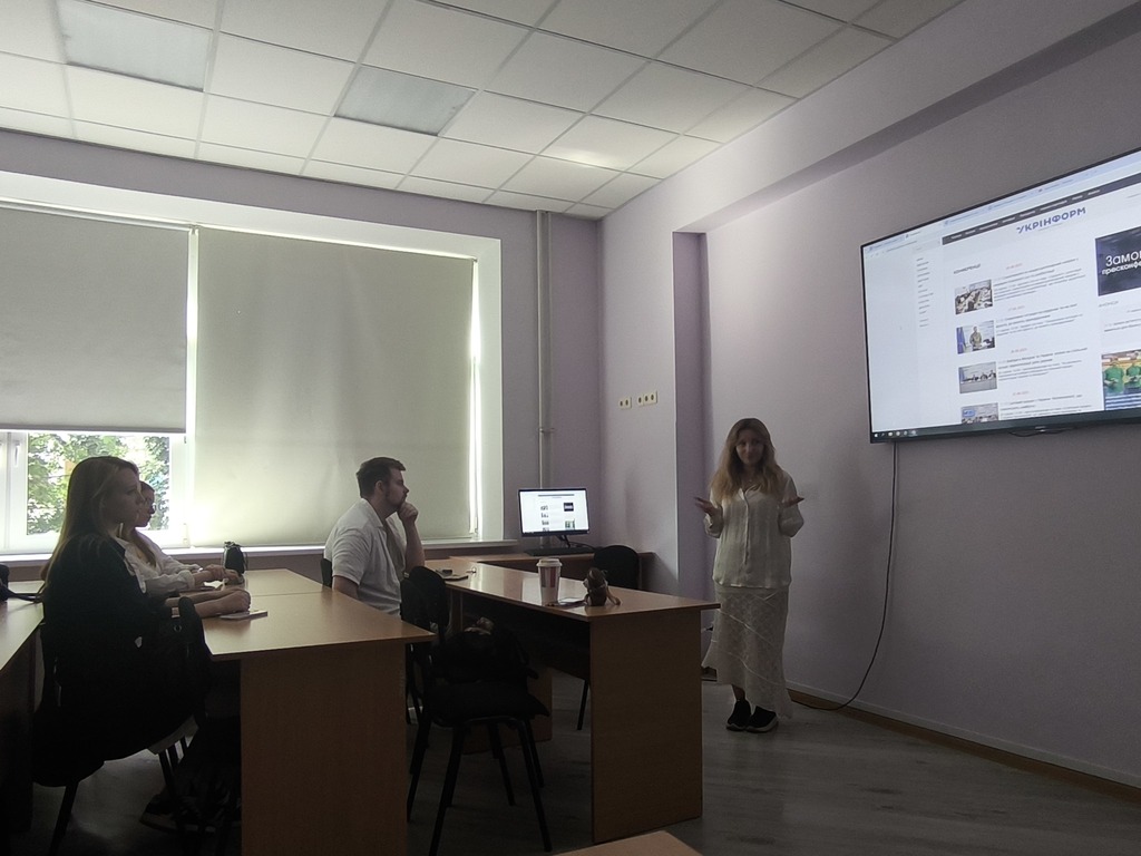 Поспілкуватися з майбутніми журналістами-міжнародниками завітали випускники освітньої програми «Міжнародна журналістка» Вікторія КРАВЧУК, Максим КРАСНОЩОКОВ, Каріна КІШУК. Зустріч проходила у дружній атмосфері, яку не зіпсувала навіть вимушена перерва внаслідок оголошеної повітряної тривоги. Першокурсники задавали питання, цікавилися різними аспектами роботи сучасного українського журналіста. Кафедра міжнародної журналістики щиро дякує Вікторії, Максиму та Карині!