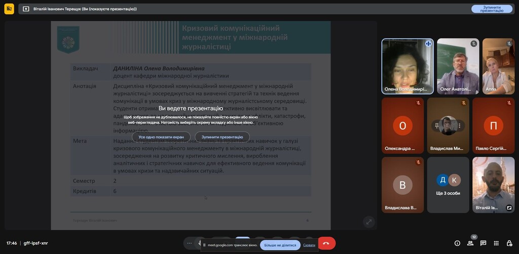 17 вересня 2025 року кафедра міжнародної журналістики провела зустріч зі здобувачами I курсу магістерської освітньої програми «Міжнародні медіа та цифрові комунікації» щодо процедури та можливостей вибору дисциплін.