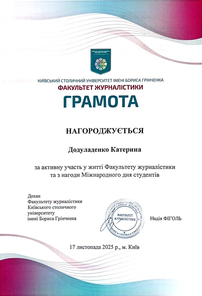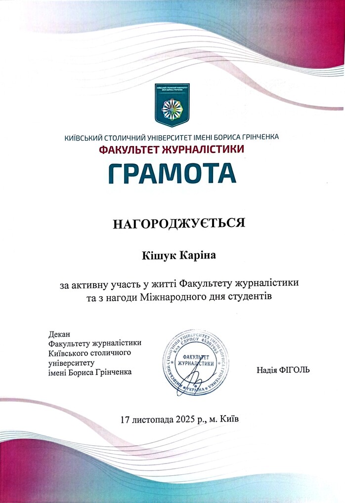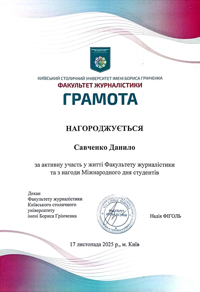 17 листопада 2025 року до Міжнародного дня студента відбулася церемонія нагородження здобувачів Факультету журналістики.
