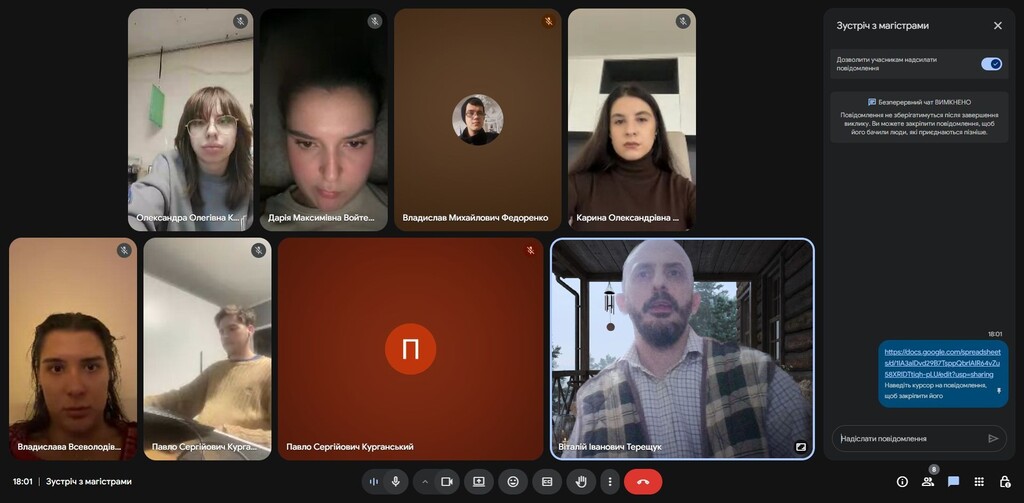 1 грудня 2025 року відбулася зустріч гаранта магістерської освітньої програми «Міжнародні медіа та цифрові комунікації» Віталія Терещука зі здобувачами-першокурсниками. Під час зустрічі гарант були обговорені такі питання: