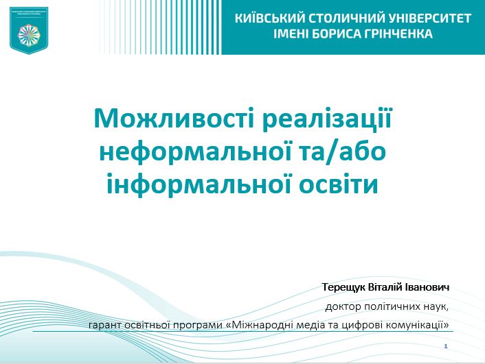 - Можливості реалізації неформальної та інформальної освіти. Гарант розповів про Порядок визнання та перезарахування результатів навчання в Київському столичному університеті імені Бориса Грінченка, звернув увагу на можливість проходження безкоштовних онлайнових курсів, опанування яких може бути враховане як виконання самостійної роботи та/чи як опанування змістового модуля у низці дисциплін навчального плану.