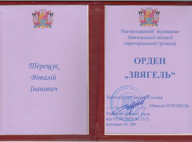 З-поміж інших відзнакою Звягельської громади — орденом «Звягель» — був нагороджений завідувач кафедри міжнародної журналістики Віталій ТЕРЕЩУК.