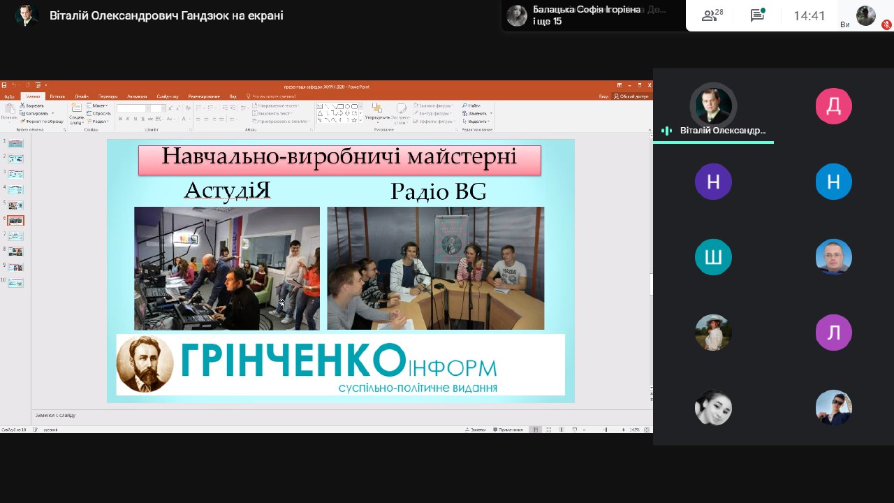 15 грудня 2020 року на кафедрі журналістики і нових медіа Інституту журналістики Київського університету імені Бориса Грінченка пройшов другий день творчого марафону «Журналістика online».