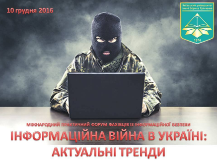 The International Forum of Information Security Specialists was launched in 2012 by the specialists of the Department of Advertising and Public Relations of the Institute of Journalism of the Borys Grinchenko University of Kyiv. During the first few years of existence, the project was implemented in the format of diverse conferences, seminars, author workshops. Subsequently, a professional expert environment was formed on its base, and the Military Institute of the T. Shevchenko Kyiv National University, NGO «Civil Society Development Agency» NGO and the International Center for Security and Defense (Estonia) Foundation became permanent partners of the project.