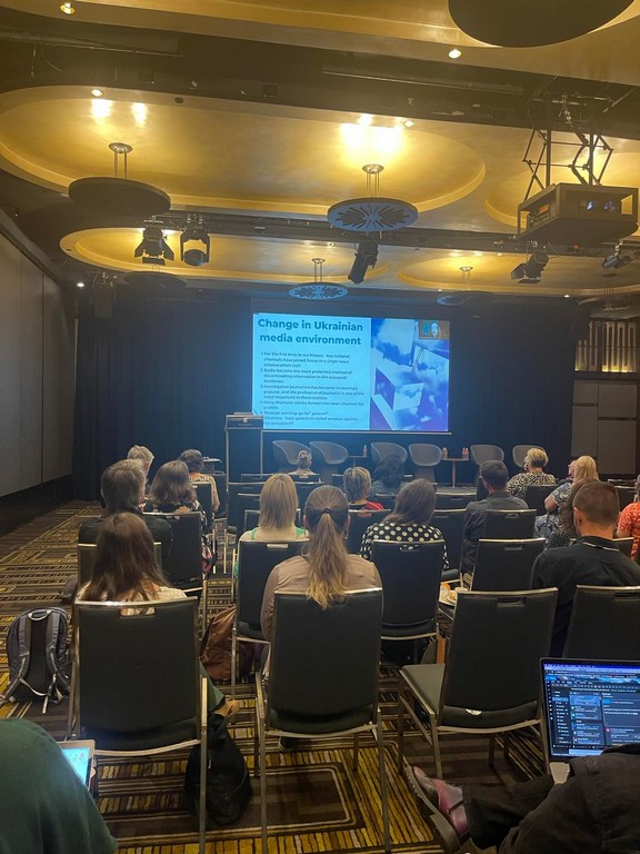 Спільною темою виступу представниць Університету Грінченка була “At the frontline: The role of journalism in the war for Ukraine's existence” (На передовій: роль журналістики у війні за незалежність України).