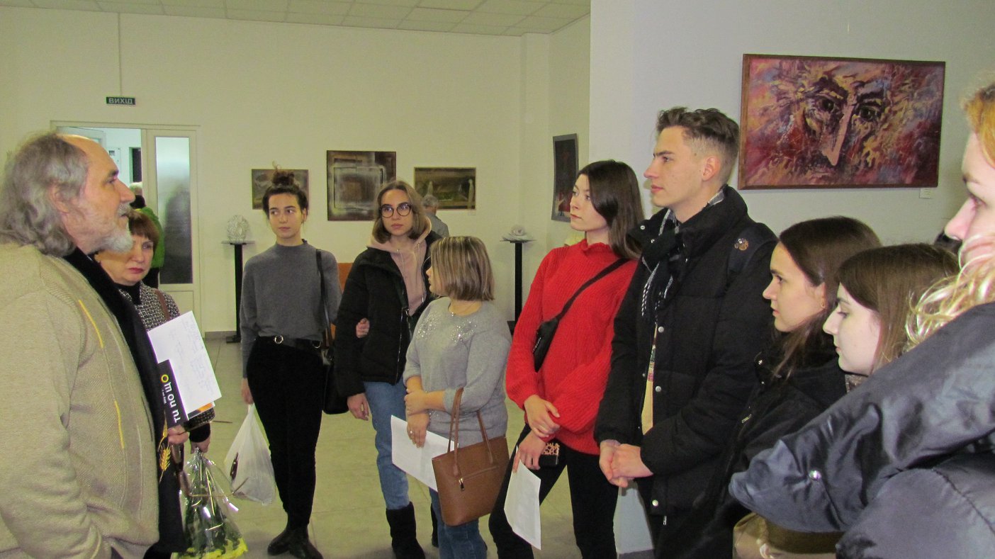 Студенти оглянули експозицію та познайомилися з авторами. Валерій Франчук розповів, що тема для нього надзвичайно хвилююча, адже його мати теж пережила Голодомор. Митець щороку знаходить можливість відзначити ці трагічні події в історії нашої держави новою виставкою.