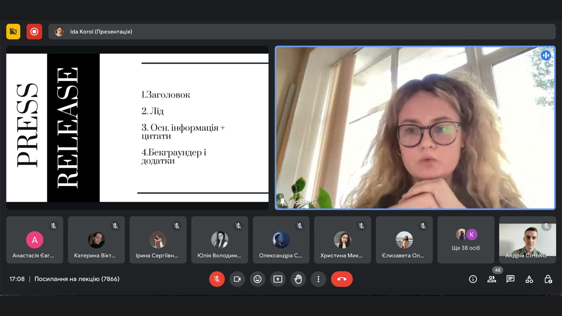 Наприкінці зустрічі здобувачі ставили безліч запитань щодо отримання практичних навичок під час роботи та різних інших аспектів підготовки пресрелізу. Лідія вичерпно відповіла на всі запитання та поспілкувалась зі студентами.