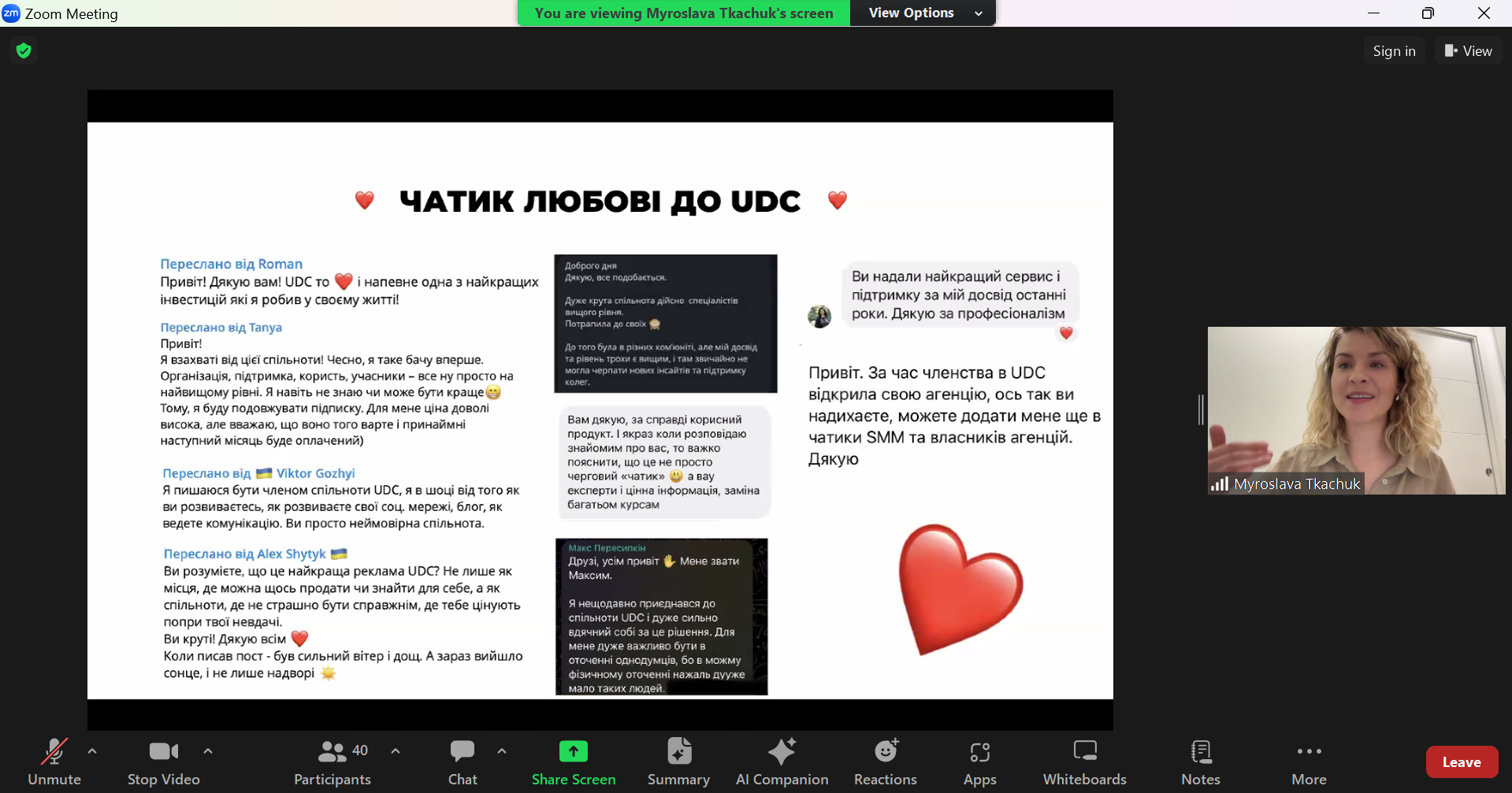 - Кейс Ukrainian Digital Community. Мирослава поділилася власним досвідом створення та управління Ukrainian Digital Community. Вона розповіла про виклики, з якими стикалася, та успіхи, яких вдалося досягти завдяки правильному підходу до управління спільнотою.