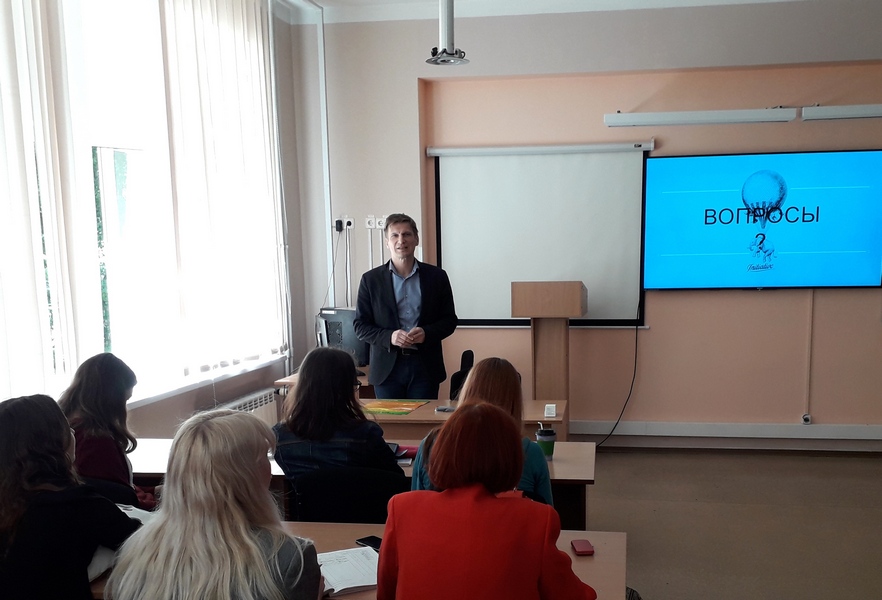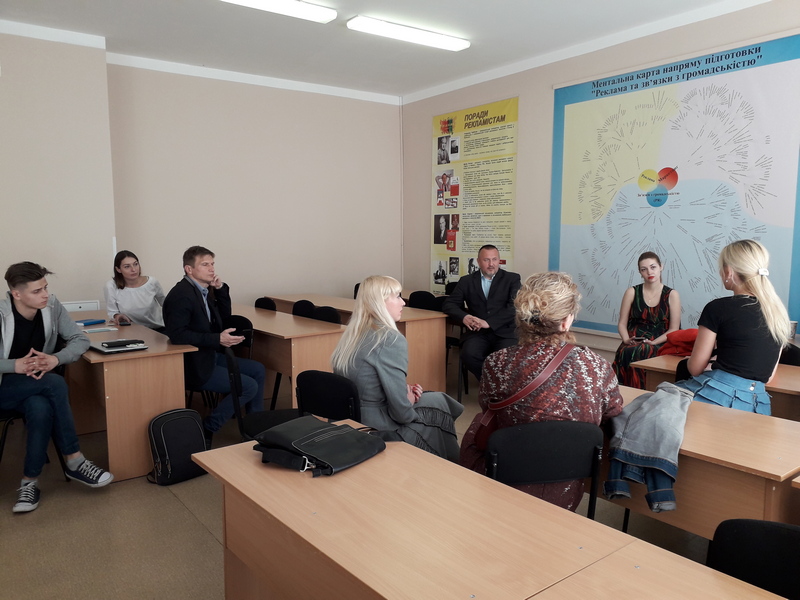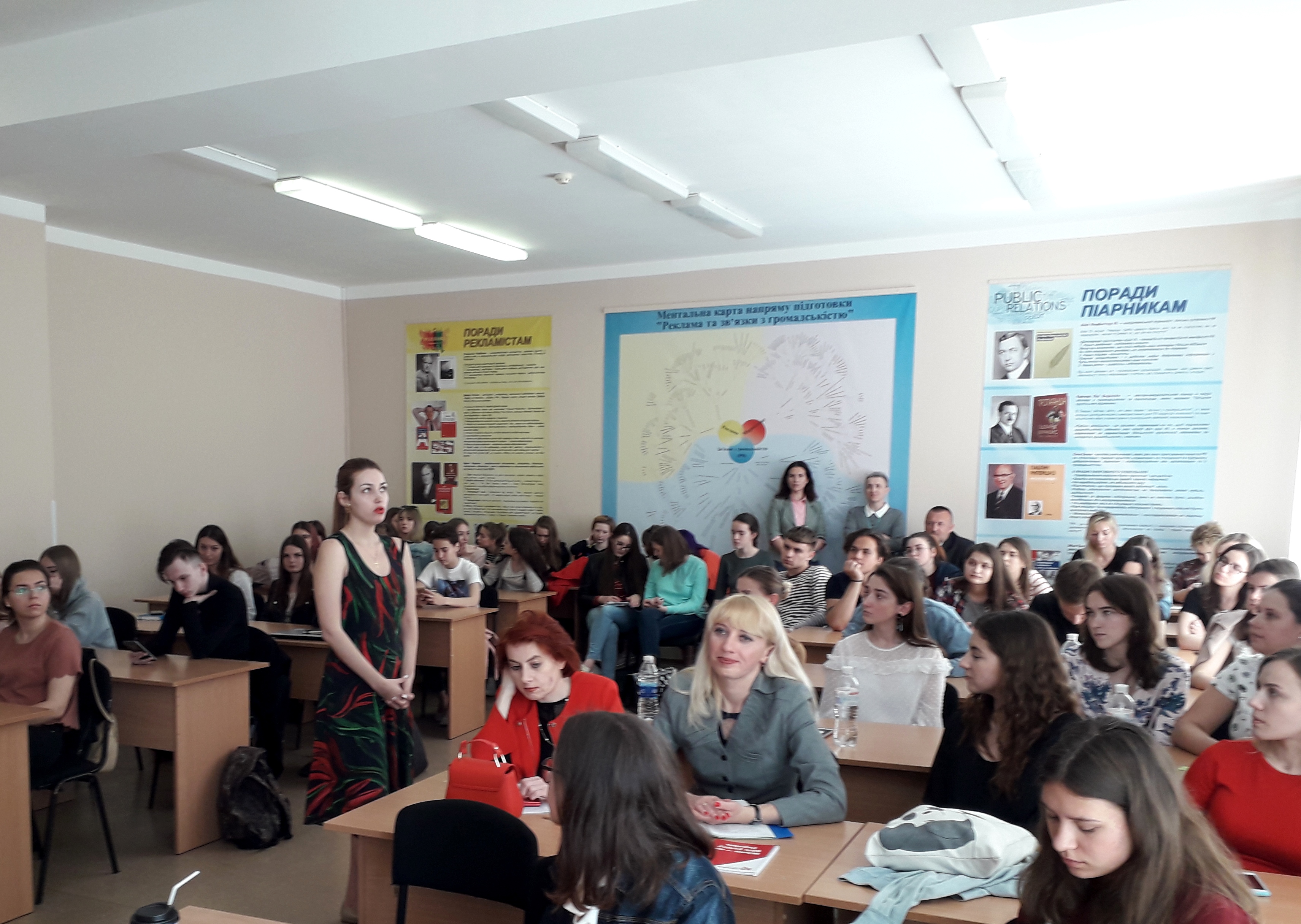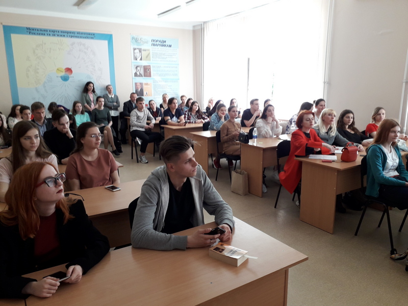 Анна Сухаревська, засновник IQ LUXURY GROUP, поділилися своїм цікавим досвідом промоції відомого психолога Михайла Лабковського, розповіла про рекламне співробництво з Ярославом Самойловим, Вікторією Бонею, Анною Сєдоковою, закупівлю реклами у зірок шоу-бізнесу, навела конкретні, деталізовані приклади роботи з промо-кодами. Доповіді уважно слухали не лише студенти, але й співробітники Інституту журналістики: викладачі кафедри реклами та зв’язків з громадськістю І.Ю.Афанасьєв, К.М.Семенюк, О.І.Стадніченко, М.А.Тебешевська, О.М.Яремчук, викладачі кафедри журналістики та нових медіа О.В.Одаренко, О.А.Хамедова, викладачі кафедри бібліотекознавства та інформології В.Є.Сошинська, Н.М.Терещенко; деякі інші; ще одна гостя заходу — Марія Літвін,івент-менеджер, провідний фахівець із зв’язків з громадськістю Українського культурного фонду. Після того, як студенти вирушили на пари, діалог продовжився, можна сказати, на рівні “P2P” — Professional to Professional, професіонал для професіонала. Запитання й відповіді, обмін практичним досвідом і теоретичними знаннями, про ефективні в українських реаліях методи аналізу цільової аудиторії, вибір каналів комкунікації, багато інших тем. Невимушене, неформальне, при цьому змістовне спілкування в широкому спільному колі й групами по 3-7 осіб тривало ще понад годину. Що й не дивно: наполегливі рекламісти й піарники навчаються протягом усього свого життя!