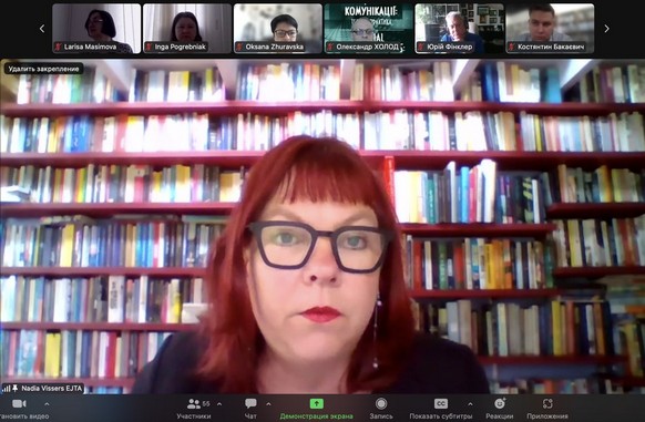 Тетяна Лебедєва, Почесна голова Національної асоціації медіа, член Комісії з журналістської етики, Христина Бердинських, журналістка, авторка теле- та радіопрограм, кореспондентка Le Courrier d’Europe Centrale в Україні та Ольга Мусафірова, журналістка, власна кореспондентка «Нової газети. Європа» в Україні дискутували щодо журналістських стандартів в умовах збройного конфлікту.