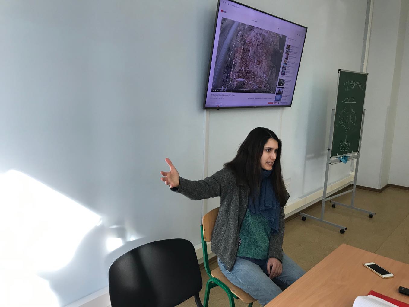 Автор книги "Навіщо", режисер та письменниця завітала до студентів разом з Анастасією Старожицькою, співрежисером стрічки "Війна химер". Студенти передивилися обрані місця з фільму про справжню історію майданівця, який пішов на війну і потрапив до Іловайського котла. До гостей було багато запитань, зокрема, чи не було їм страшно знімати на війні і чи вважають вони, що громадяни України сьогодні добре розуміють, чим саме був Майдан і що відчували та відчувають сьогодні його учасники.