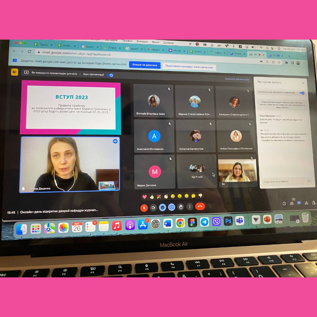 26 квітня 2023 року відбувся Онлайн–день відкритих дверей на кафедрі журналістики та нових медіа.