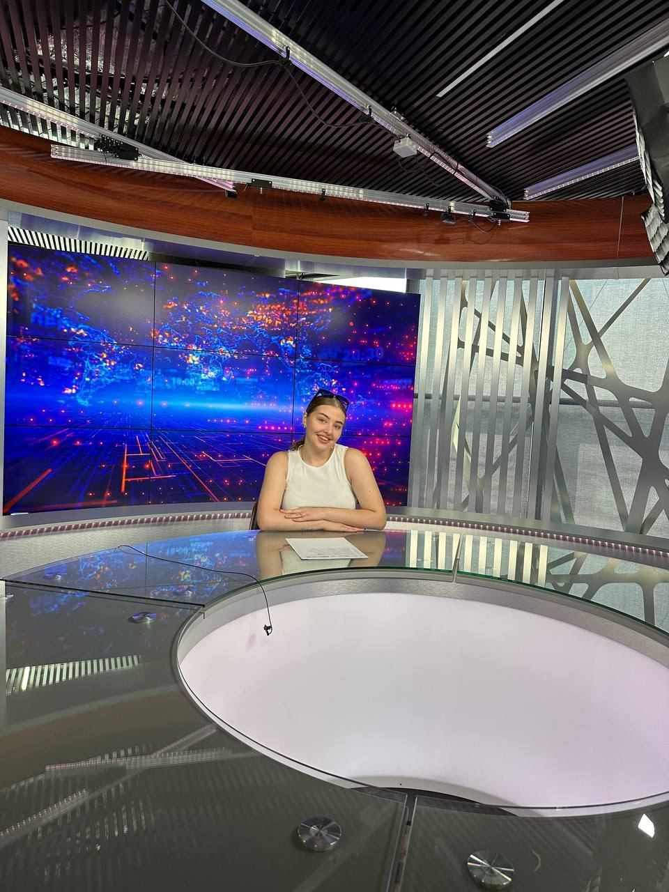 Майбутні журналісти сфотографувались на робочому місці ведучої, де проходять прямі включення телемарафону та ставили запитання фахівцям телеканалу.