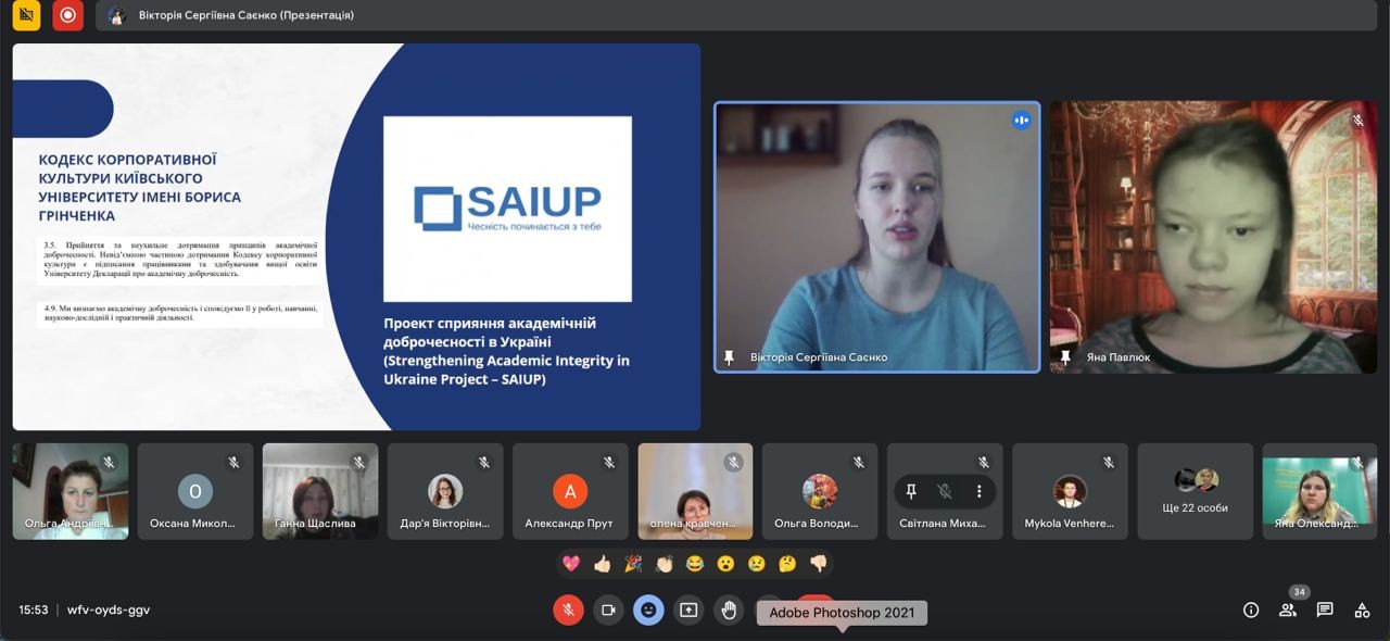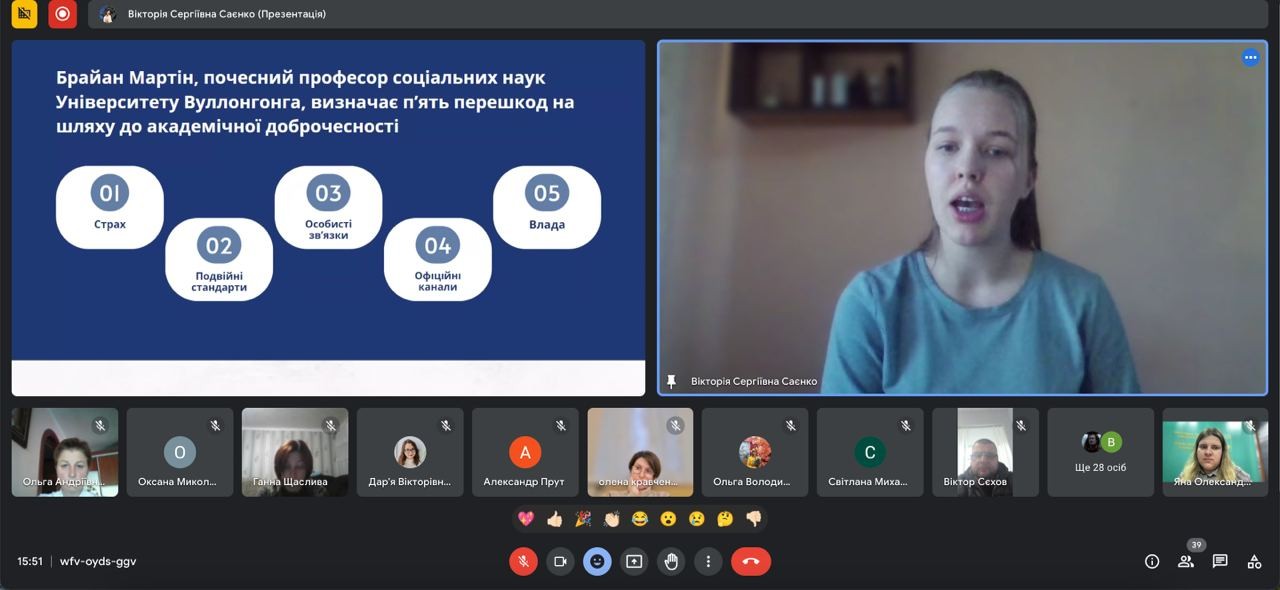 – Вікторія Саєнко окреслила у виступі дотримання академічної доброчесності в університетах;