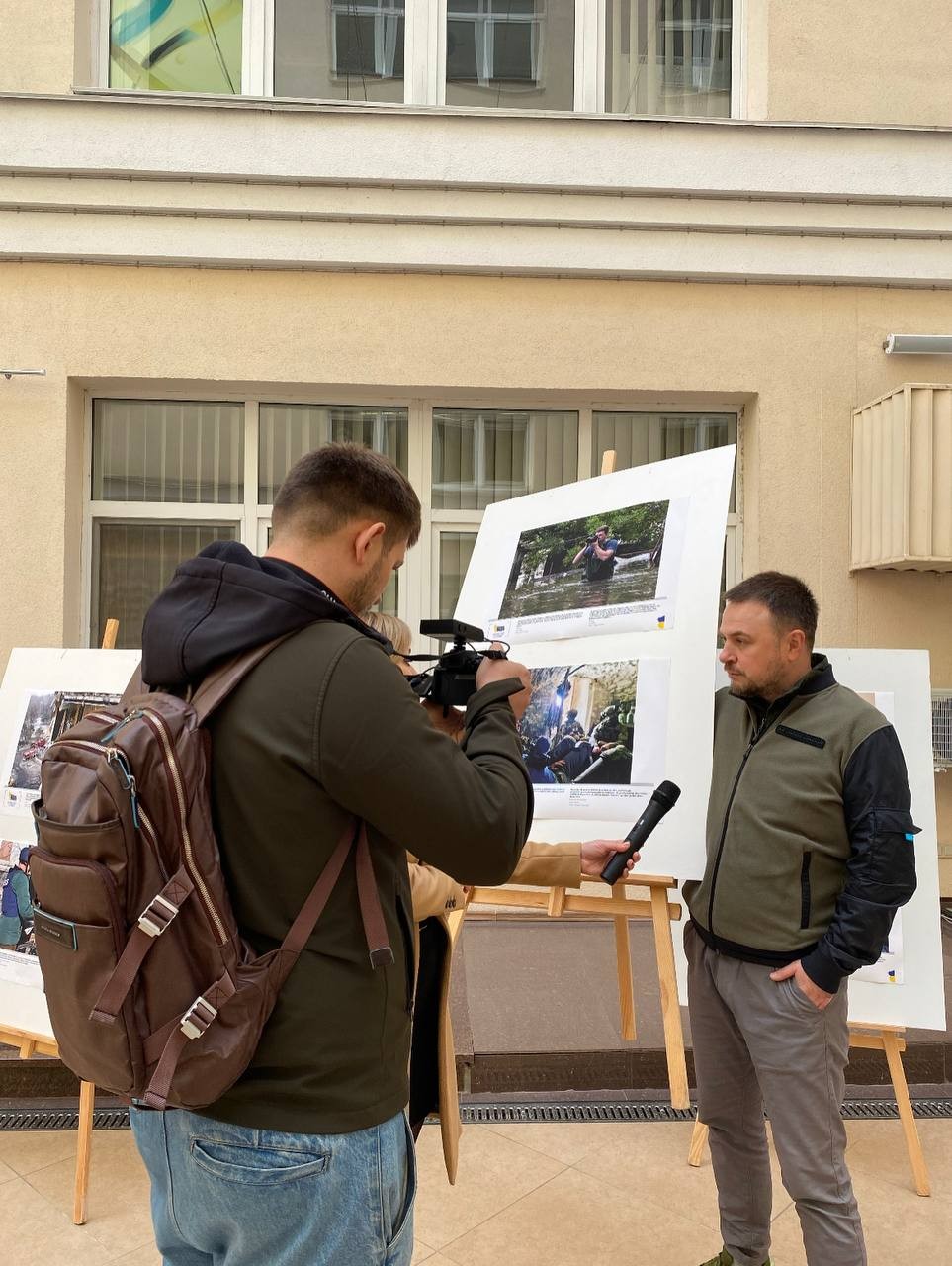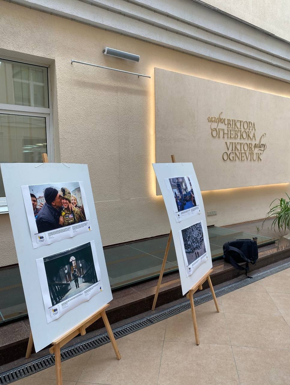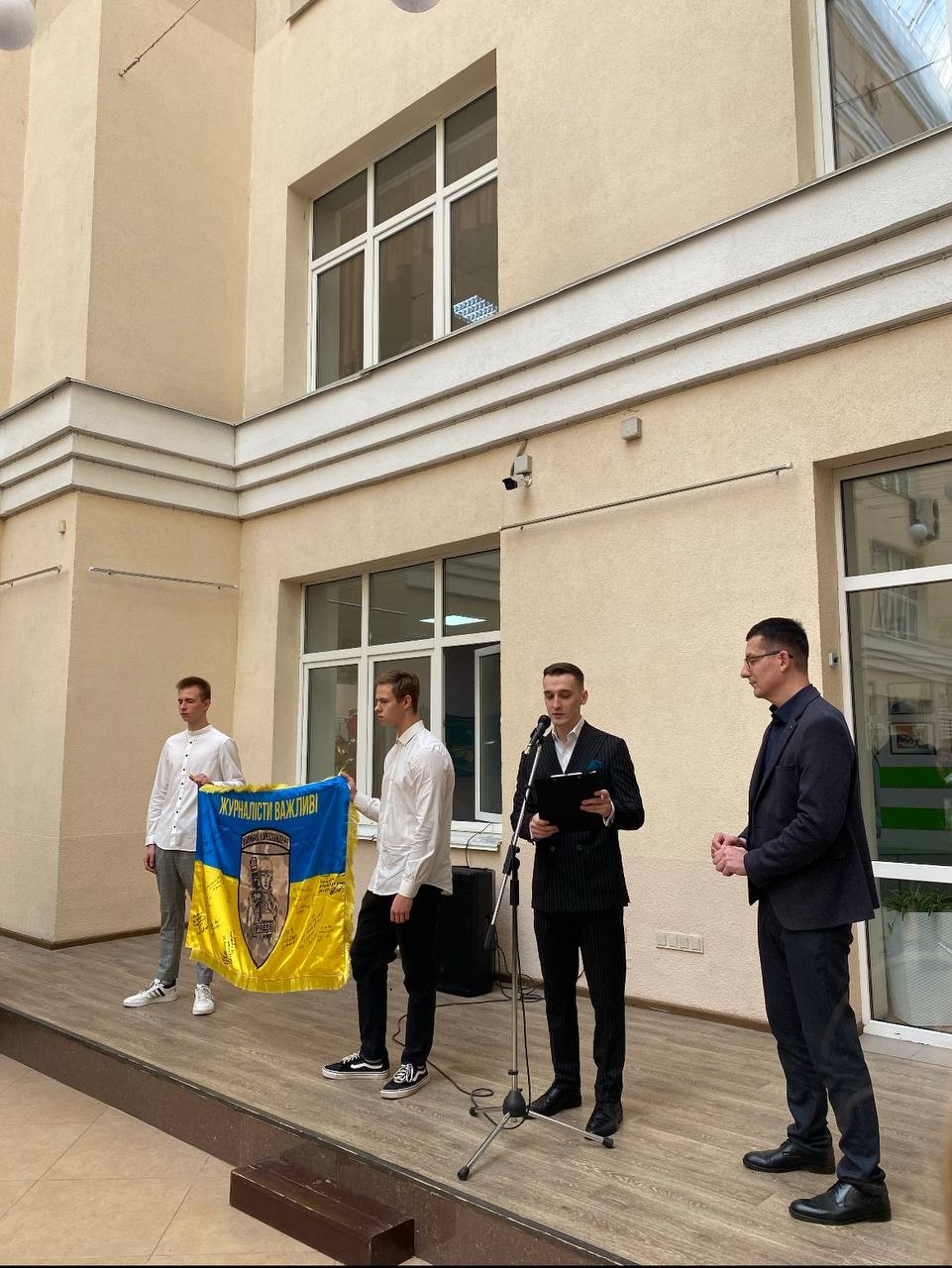 У внутрішньому університетському дворику голова Національної спілки журналістів України (НСЖУ) Сергій Томіленко презентував міжнародну фотовиставку «Ukraine Journalists in WAR zones». Експонатами стали роботи фотокореспондента Associated Press Єфрема Лукацького, воєнкора Апостроф TV Михайла Шаркова, фотожурналіста Яна Доброносова та ін. Авторів світлин відзначили спеціальними шевронами, які розробила Кароліна Муховікова. Крім цього, був показаний прапор воєнних кореспондентів із гаслом «Журналісти важливі».