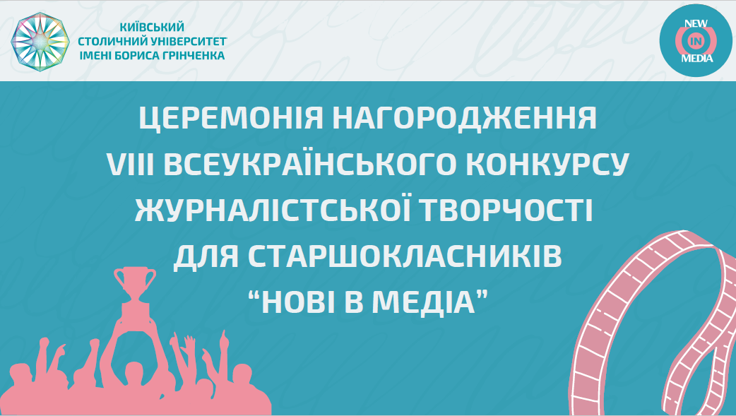 11 травня 2024 року добіг до завершення VIII Всеукраїнський конкурс для старшокласників «Нові в медіа», що надає можливість талановитій молоді проявити свої здібності у сфері журналістики. Вчергове церемонія нагородження пройшла в онлайн форматі через воєнний стан в країні. Попри це, юні учасники відзначились своєю активністю, а географія залучених старшокласників нас здивувала: Київ, Черкаси, Житомир, Харків, Краматорськ, Вінниця, Ужгород та інші. Цього року учасники могли продемонструвати свій хист у трьох категоріях : «Журналістський текст»,«Журналістський відеотвір» та особливій номінації «Журналістика під час війни в Україні». З початком повномасштабного вторгнення стала популярною фраза : «Журналісти важливі!». Сотні фахівців працюють у зоні бойових дій, поширюють інформацію про воєнні злочини та кожного дня ризикують своїм життям. Це складна та відповідальна професія, що водночас дарує мотивацію та віру, що твоя робота здатна змінювати світ на краще.