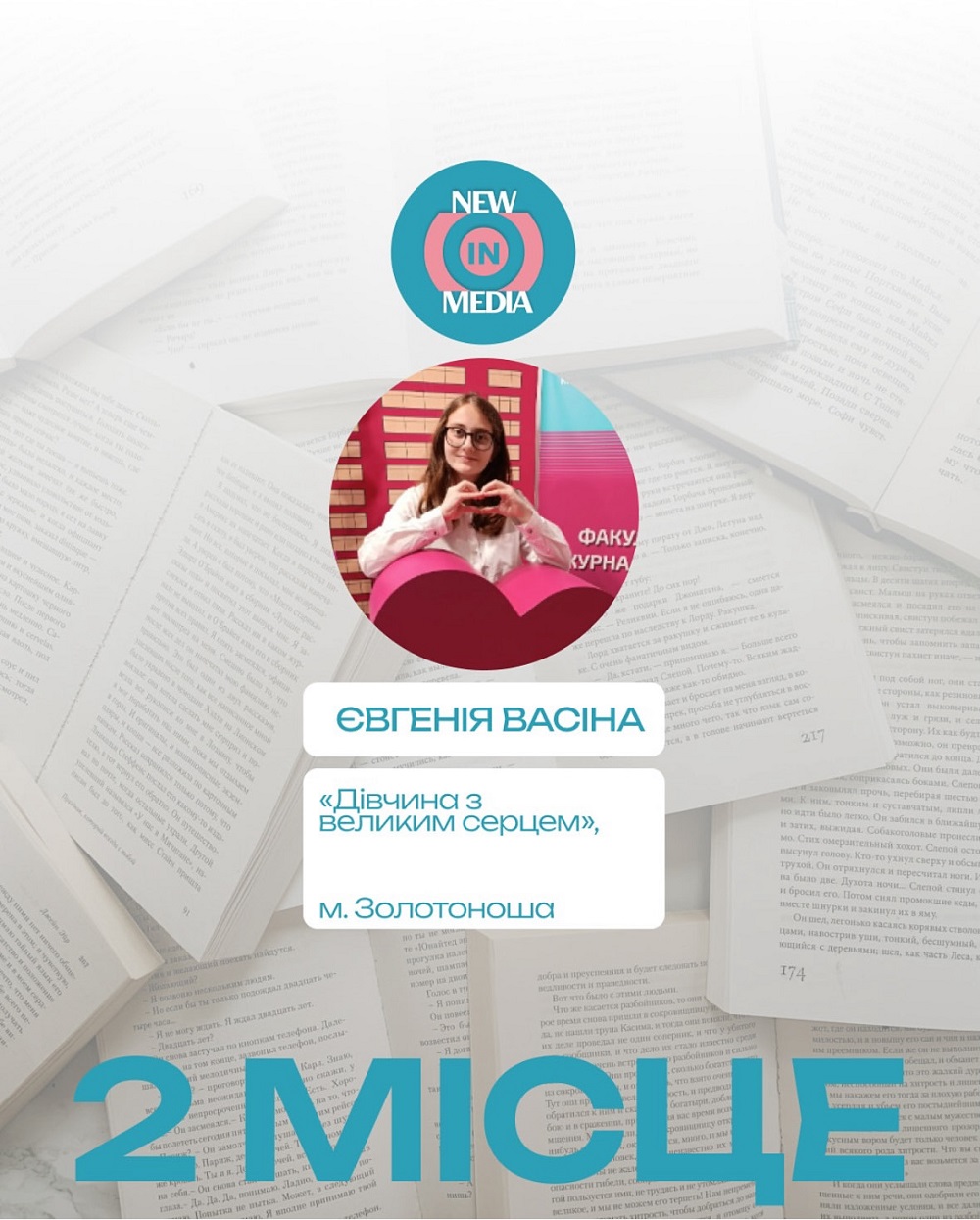 19 квітня 2025 року на Факультеті журналістики відбулася Церемонія нагородження переможців конкурсу журналістської творчості для старшокласників «Нові в медіа» в онлайн форматі. Конкурс, який кафедра журналістики та нових медіа проводить вже вдев'яте.Талановиті учасники з усієї країни надіслали понад 65 робіт. Представники з Миколаєва, Сум, Харкова, Полтави, Луцька, Краматорська й інших міст, містечок та сіл продемонстрували творчі доробки з висвітлення актуальної тематики у текстовому, відео та аудіоформатах. Цьогоріч було започатковано нову номінацію "Журналістика в соціальних мережах". До складу журі були запрошені Наталія Дудка (випускниця Факультету журналістики), Андрій Борець (доцент кафедри журналістики та нових медіа), Костянтин Бакаєвич (завідувач навчальної лабораторії радіомовлення), Мар'яна Ангелова (завідувачка навчально-виробничої майстерні тележурналістики) та студентське журі, яке очолила Ольга Шок (студентка 4 курсу, кореспондент телеканалу "Київ24.news"). Складно було обирати найкращі роботи, адже, за словами експертів, дев'ятий сезон конкурсу "Нові в медіа" здивував самостійністю вибору тем та чіткістю актуальних для України повідомлень.