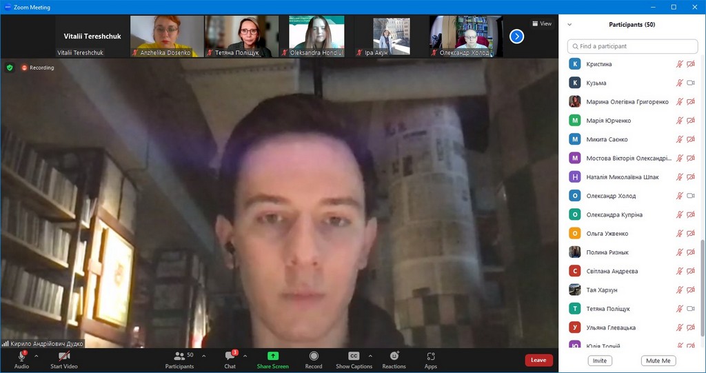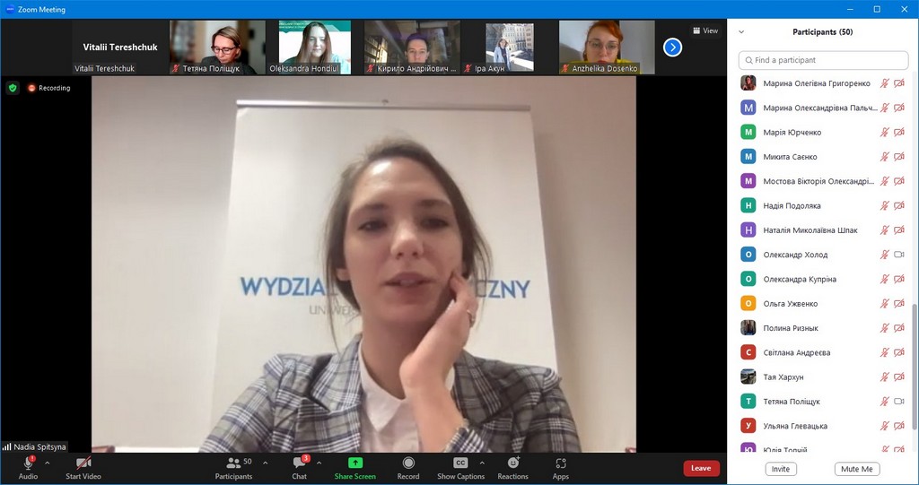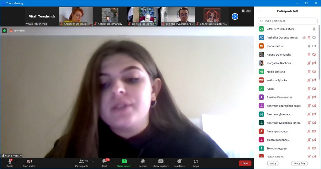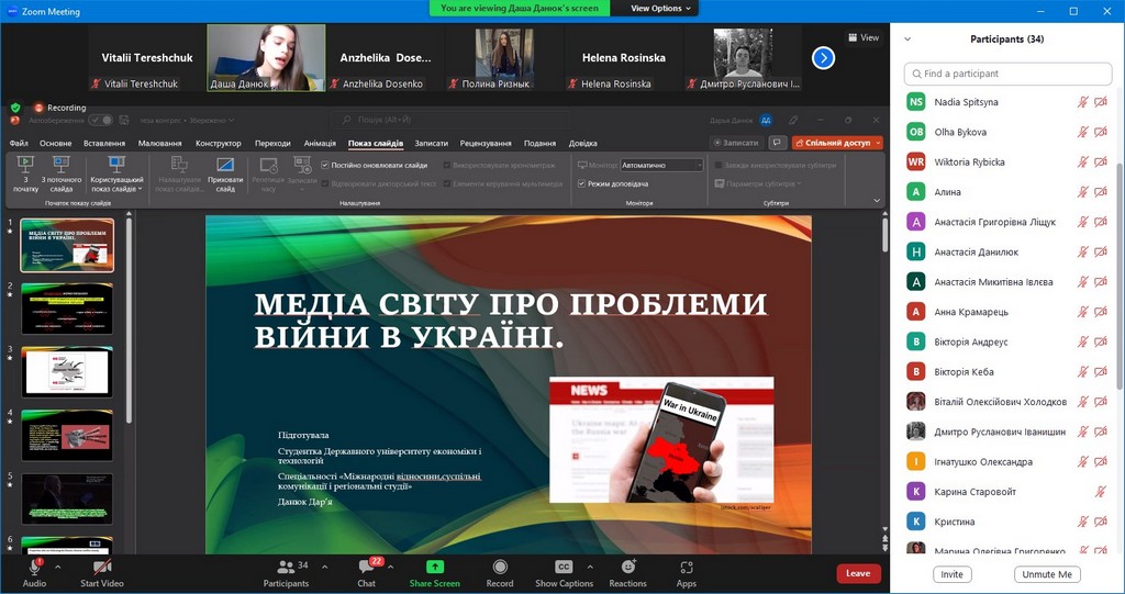 На пленарному засіданні з науковими доповідями виступали студенти з Щецинського університету (Польща) — Вікторія РИБІЦЬКА (Wiktoria Rybicka) та Надія СПІЦИНА (Nadiia Spitsyna), та студенти з вітчизняних ЗВО — Марина ГОНЧАРУК (Київський національний університет культури і мистецтв) та Юлія ТОПЧІЙ (Київський університет імені Бориса Грінченка, здобувачка ОП «Міжнародна журналістика»).