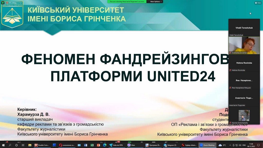 8 грудня 2022 року відбулась перша студентська науково-практична конференція з міжнародною участю «Світова журналістика в епоху глобальних змін», метою якої стало обговорення актуальних проблем світової журналістики в епоху воєн та пандемій. Розпочав роботу конференції вітальним словом завідувач кафедри міжнародної журналістики доктор політичних наук, доцент Віталій ТЕРЕЩУК.
