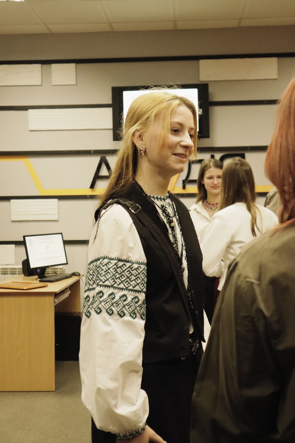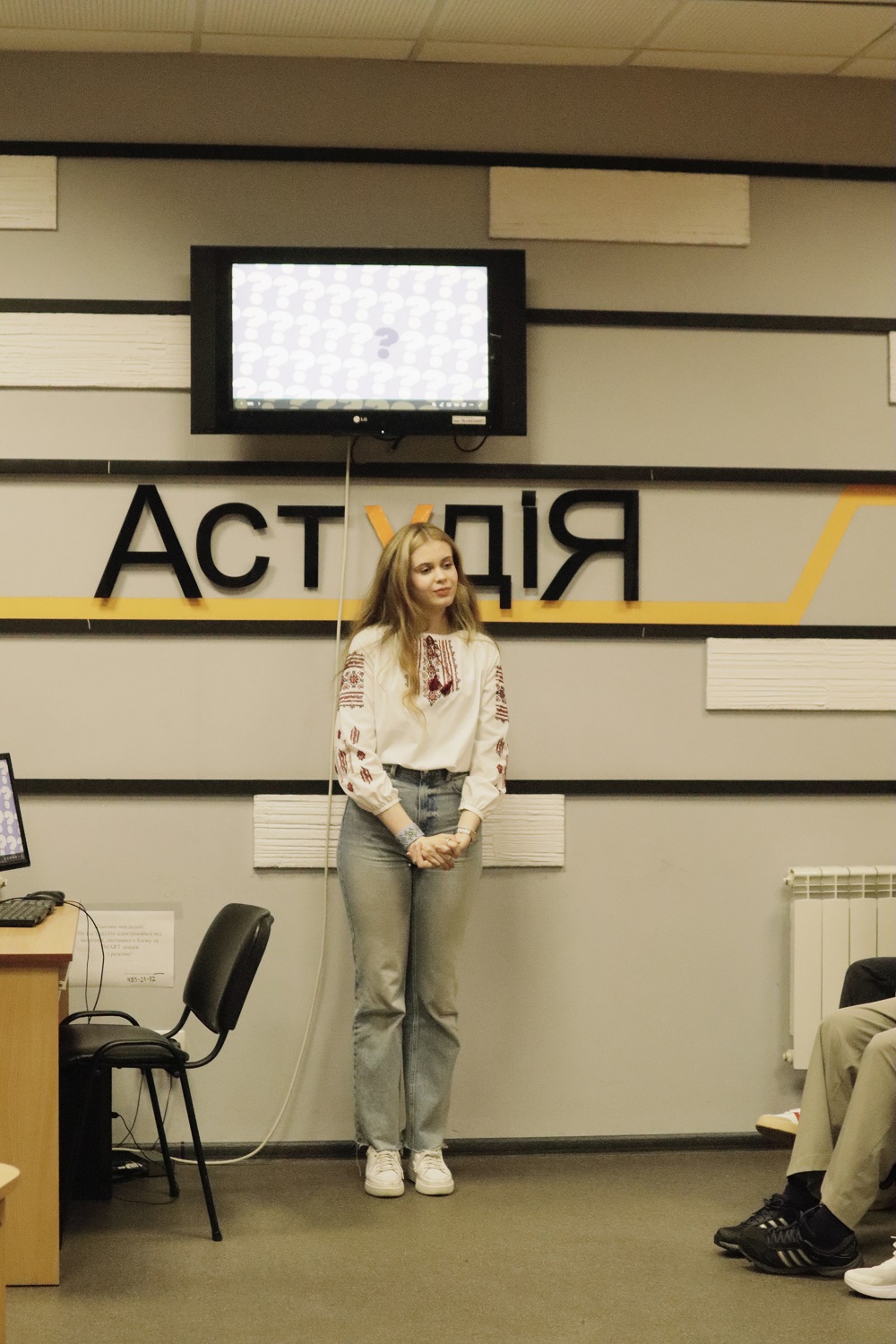 Мар'яна Ангелова, журналіст, керівник навчально-виробничої майстерні тележурналістики (АстудіЯ), яка ознайомила всіх присутніх із проєктом "Не_остання_вишиванка_ Грінченка" та запросила до співпраці в ньому.
