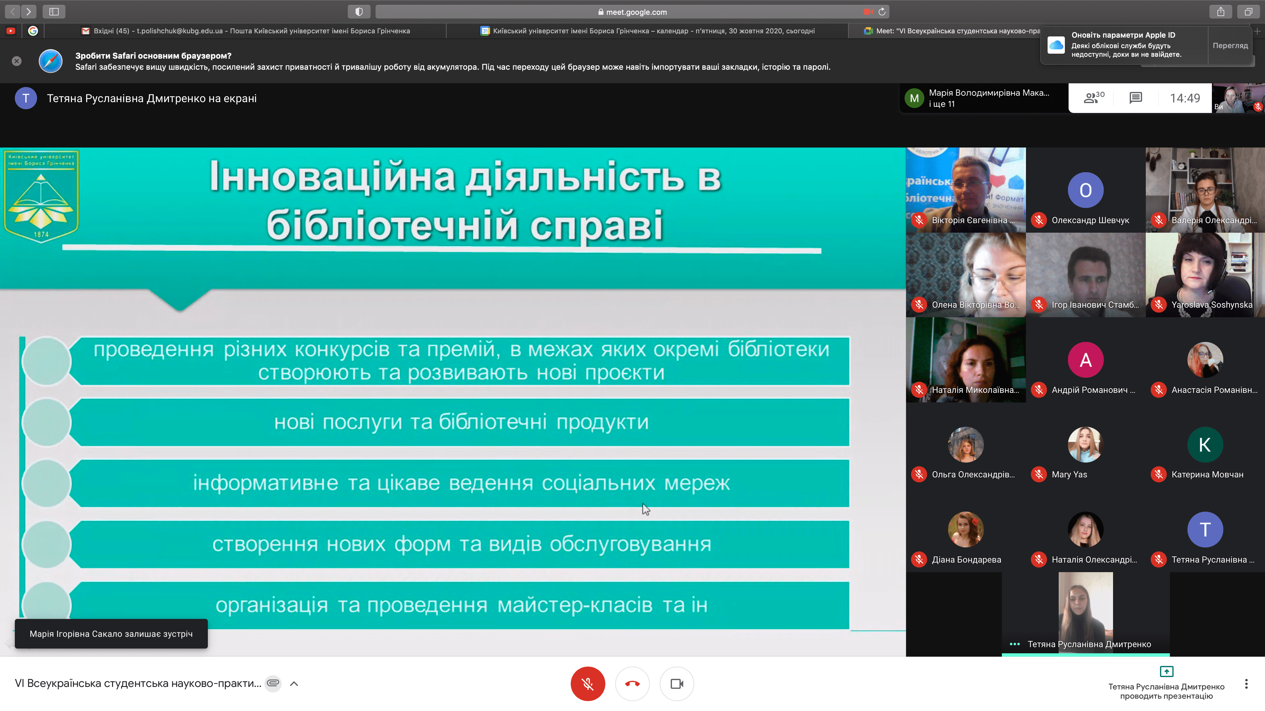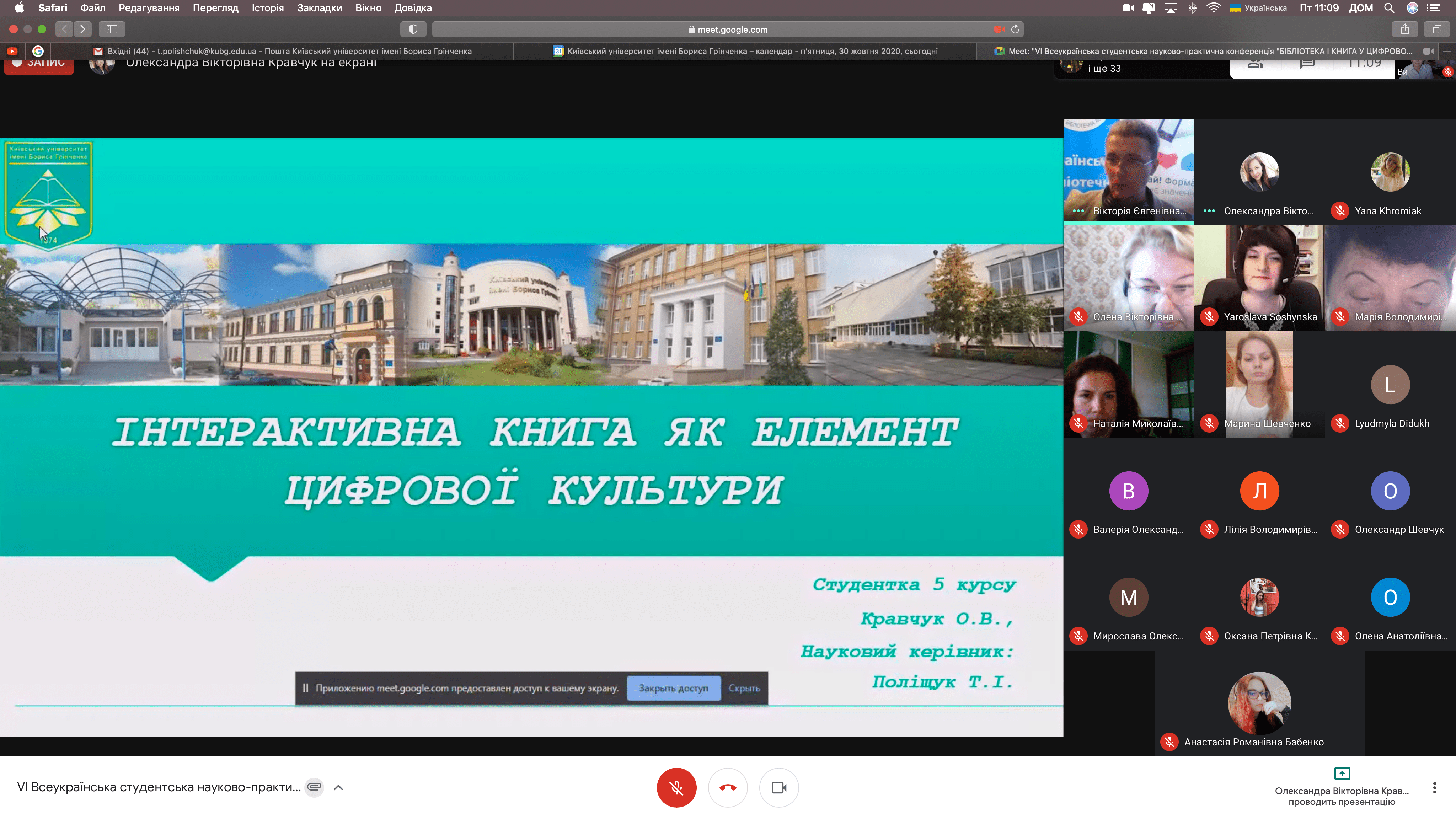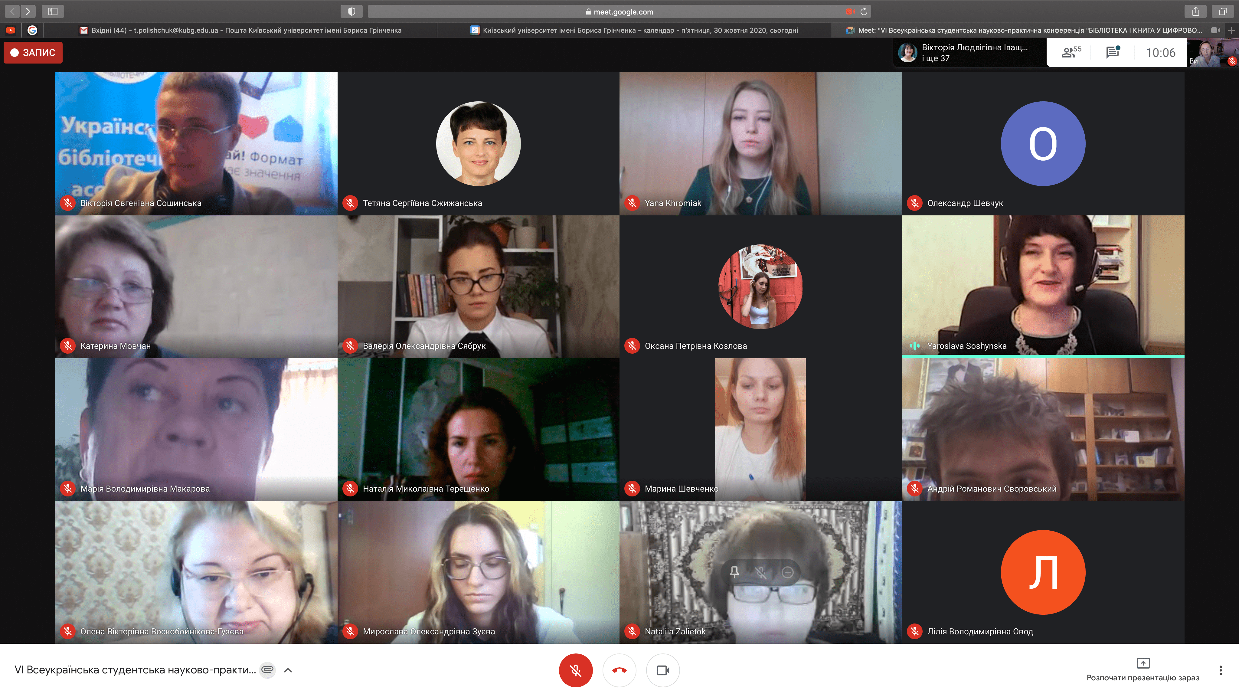 Розклад роботи конференції 30 жовтня 2020 р.