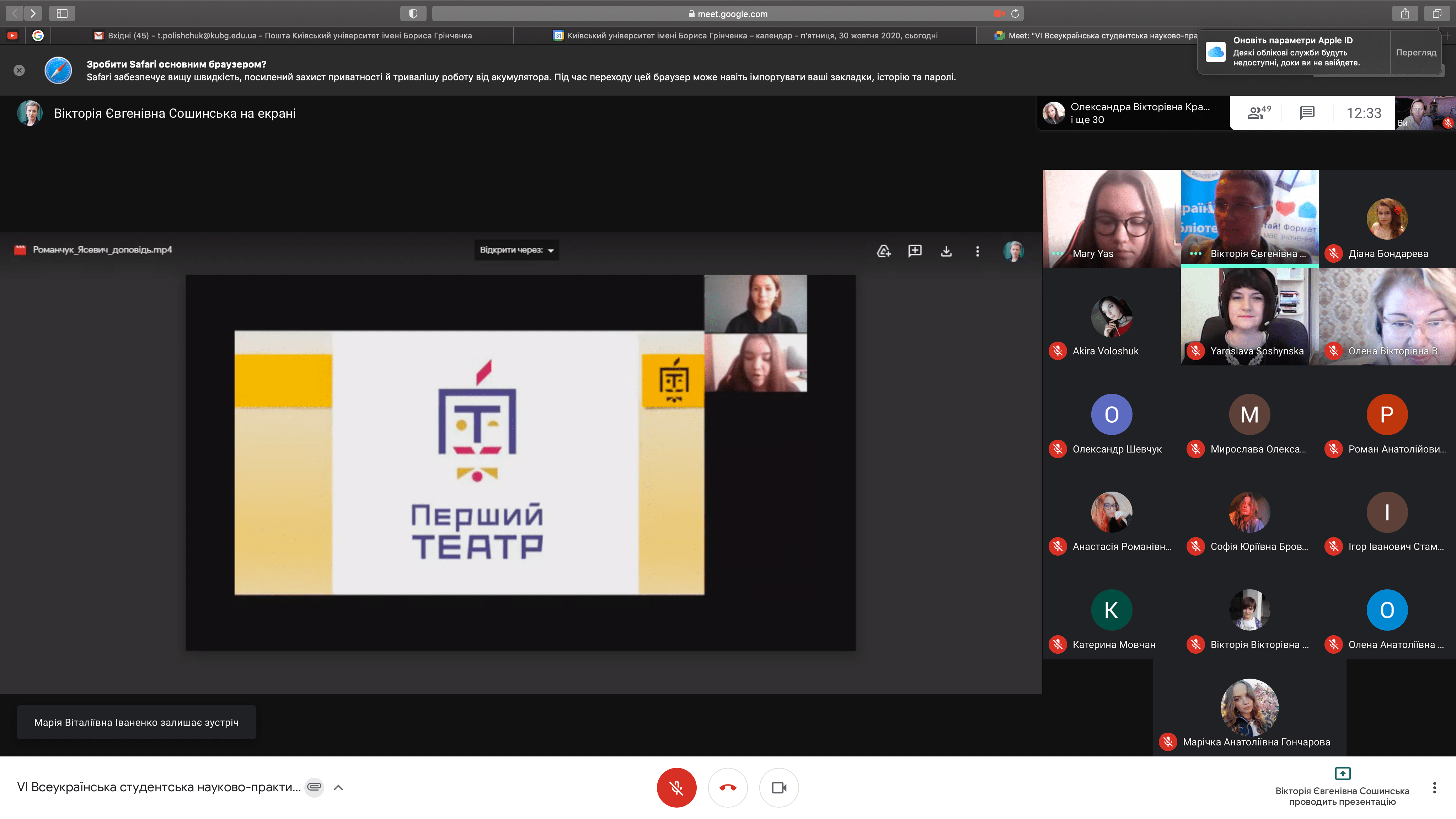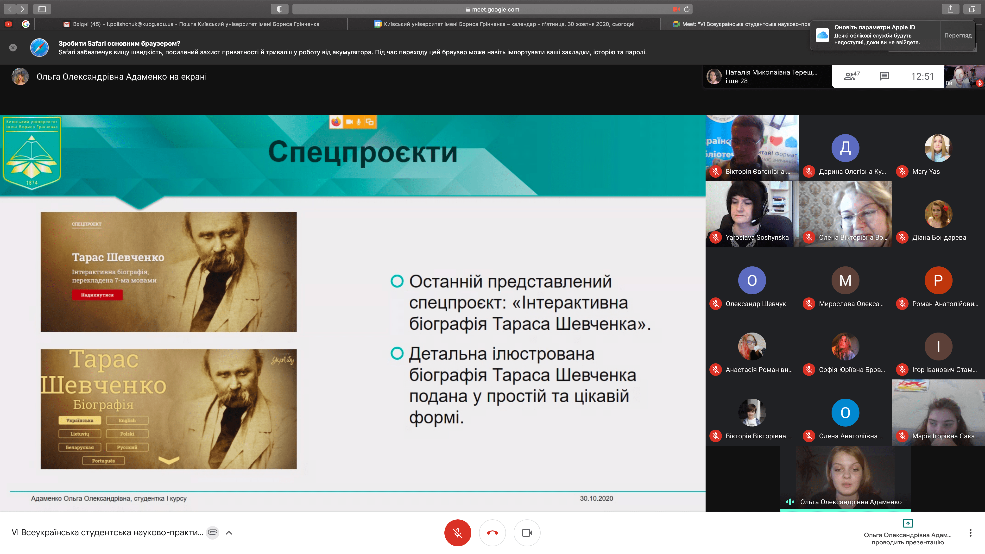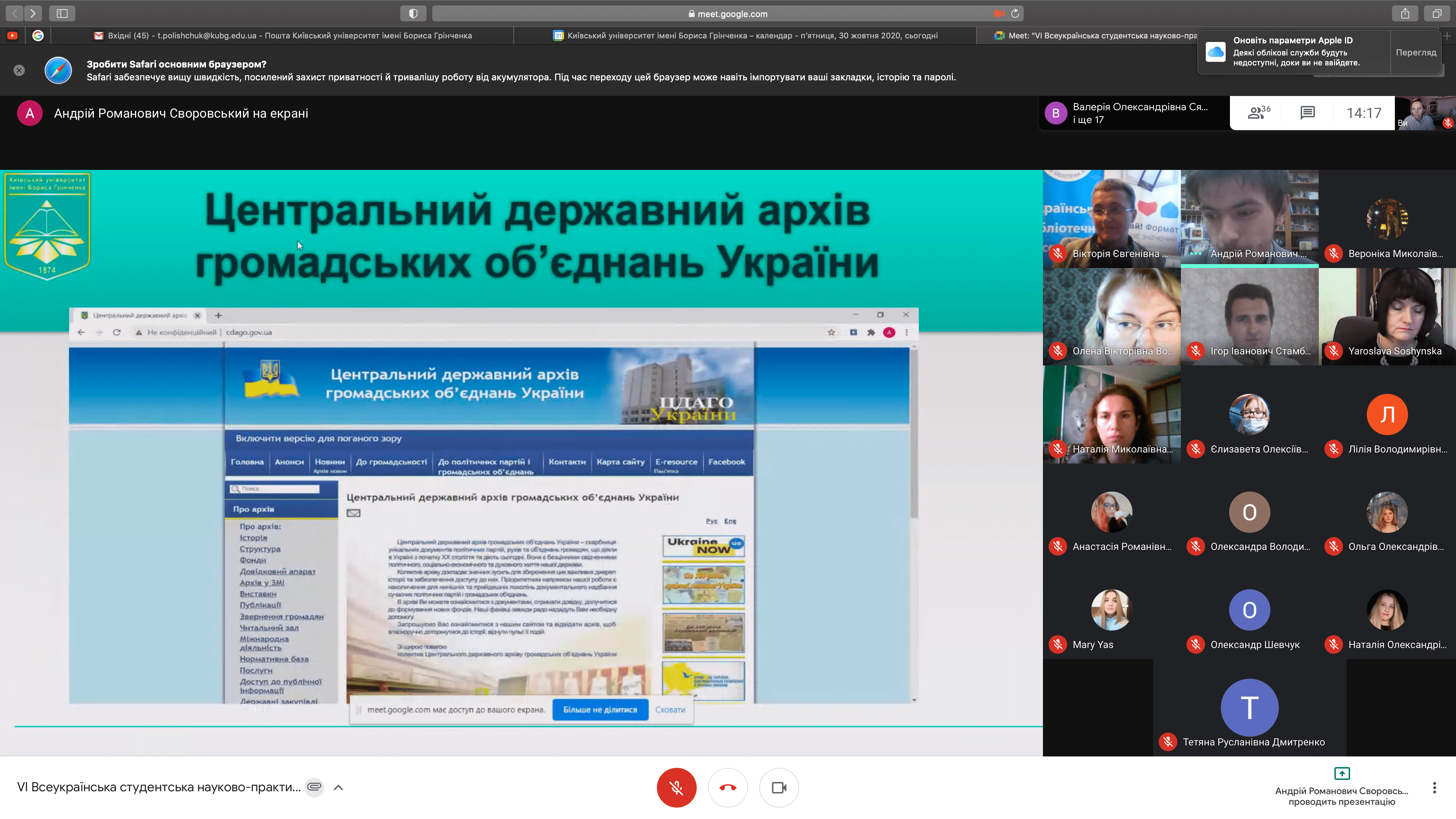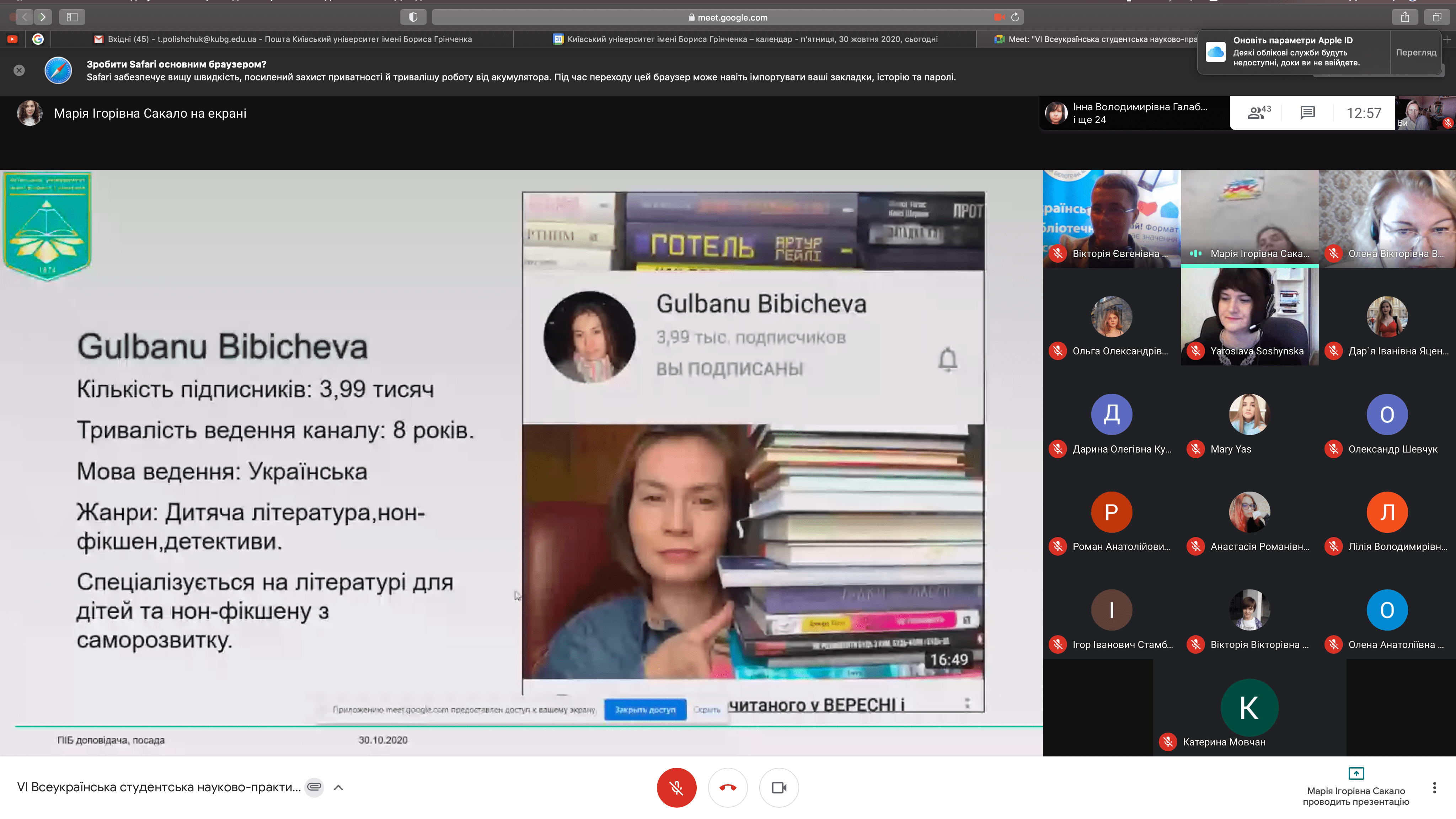 Розклад роботи конференції 30 жовтня 2020 р.