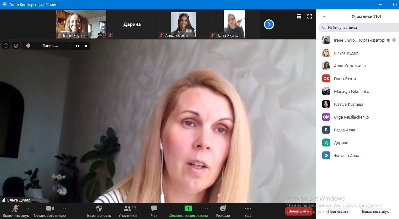 «Хочу поділитися своєю радістю, адже 15 травня я вперше стала модератором онлайн-зустрічі. Це був новий досвід спілкування та взаємодії з незнайомими людьми лише через ноутбук. Дякую спікерам за змістовні і цікаві виступи, про що підтвердили присутні на події слухачі», — поділилася враженнями на Фейсбук-сторінці організаторка заходу Ірина.
