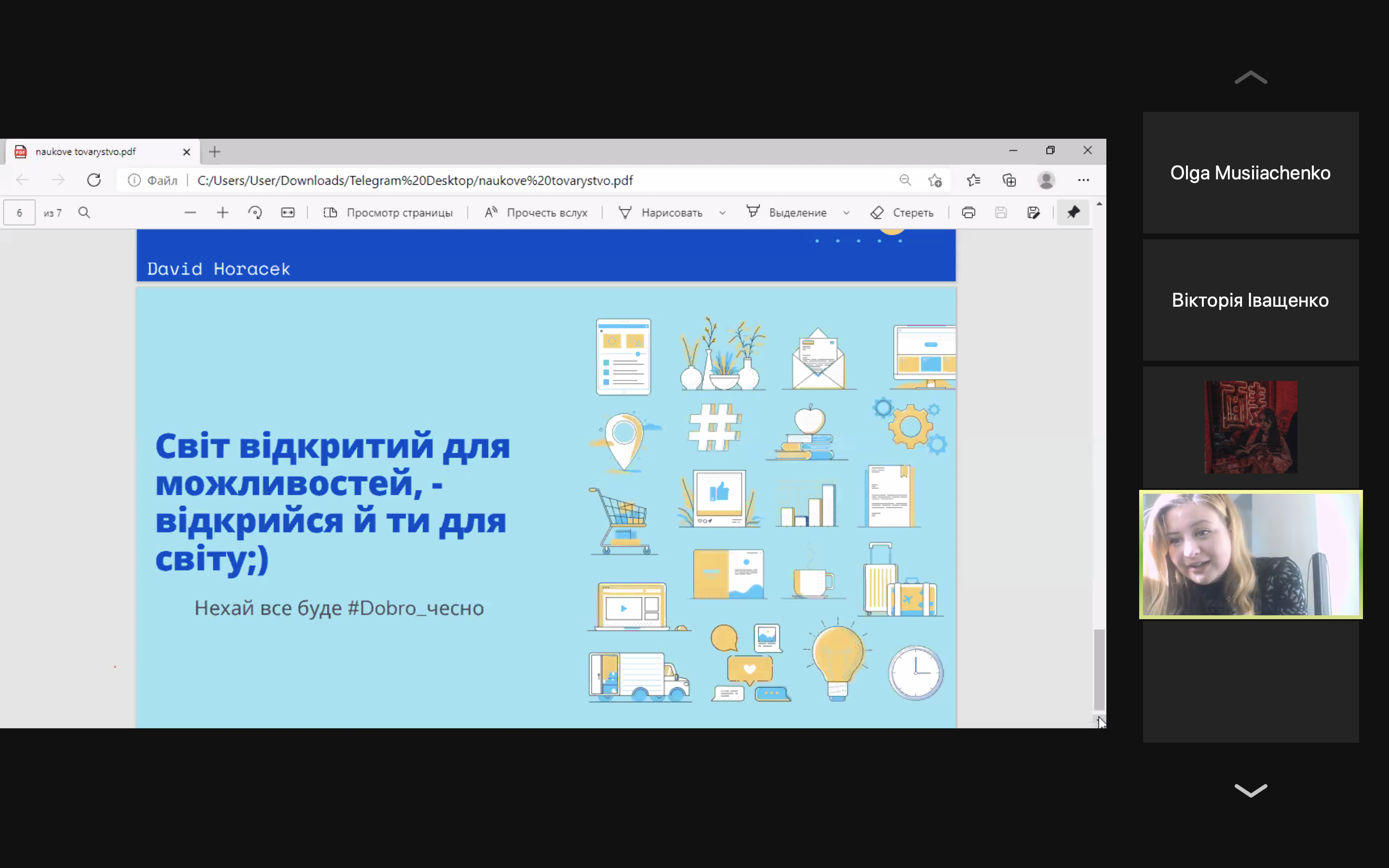 У п'ятницю, 19 лютого, відбувся вебінар «Культура академічної доброчесності: проблеми та виклики для здобувачів освіти», на якому були присутні понад двісті учасників - студенти та викладачі Інституту журналістики. Виступили: Оксана Шахова, координаторка «Школи академічної доброчесності», яка зрозуміло й доступно розповіла про академічну доброчесність у навчанні студентів та роботі викладачів, поділилася власним досвідом та порівняла закордонні прояви академічної доброчесності з українськими реаліями; Дана Сопова, викладачка циклової комісії з педагогічної освіти Фахового коледжу «Універсум», яка за допомогою наукових методик, аргументувала вагомість дотримання академічної доброчесності в Україні, поділилися досвідом академічної доброчесності у Фінляндії.