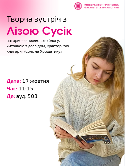 Творча зустріч з Лізою Сусік, авторкою книжкового блогу, читачкою з досвідом, креаторкою книгарні «Сенс на Хрещатику»