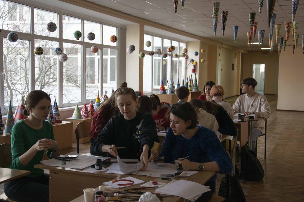 Для завершення композиції у пусті місця вписали літери з українського алфвіту. Аркуш довжиною понад 3 метри прикрасив рекреацію другого поверху, зайнявши місце на стіні від стелі й до підлоги.
