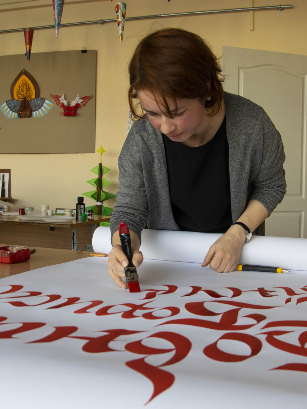 Кожен обрав собі слово, знайшов його значення або застосування в літературі та довго тренувався на окремому клапті паперу. Тоді ж, “розігрівши руки”, разом почали активно творче завдання. Процес сумлінно контролювали викладачі-організатори, допомагали розмістити текст так, щоб він гармонійно вписувався у загальну картину.