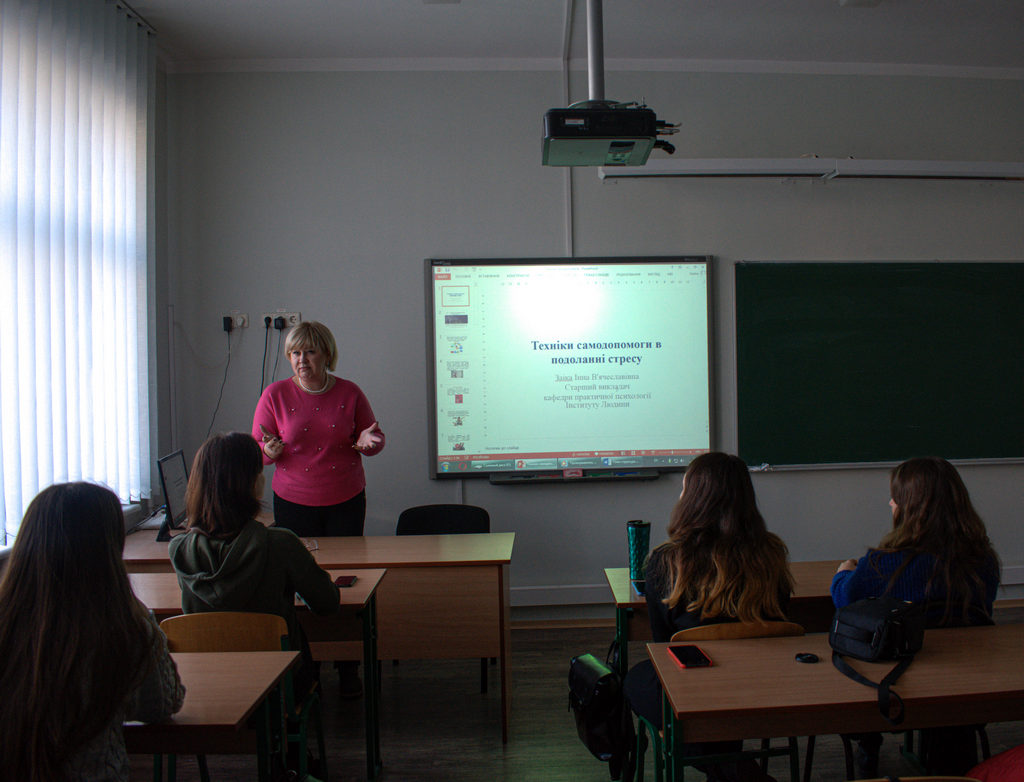 9 грудня у нашому університеті відбувся майстер-клас в якому розповідалося про те, як розпізнати та самостійно подолати стрес. Його провела викладач Інституту психологі Інна Заіка. Заняття могли відвідати усі бажаючі.
