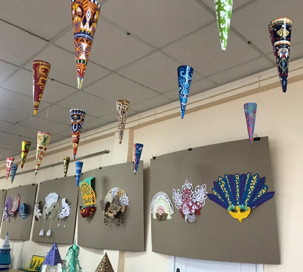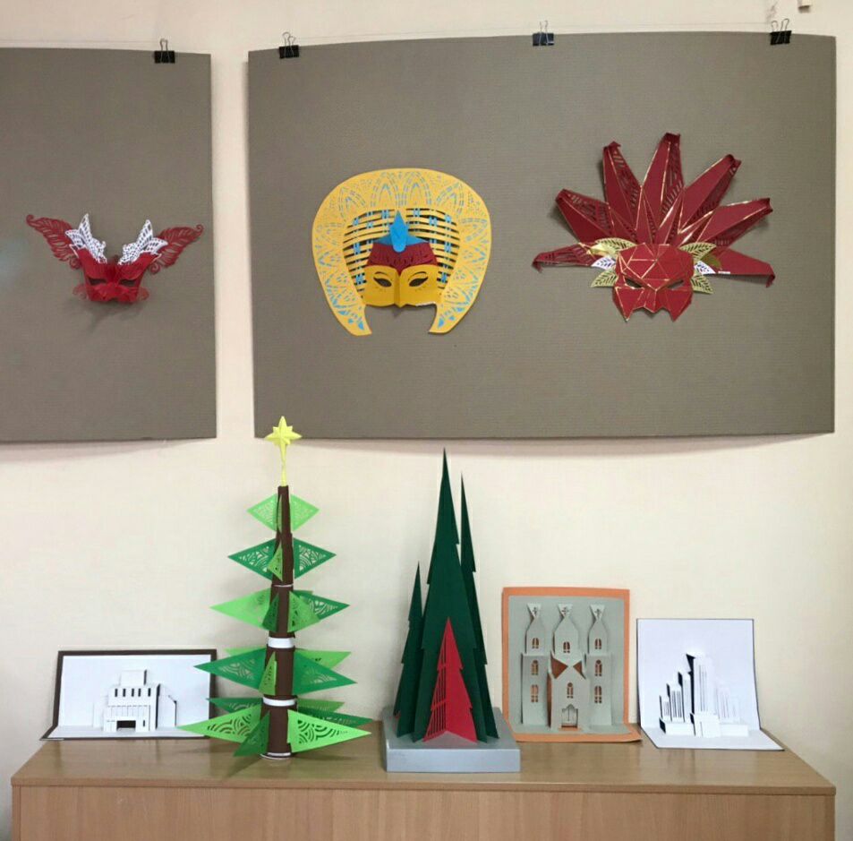 Ялинки були виготовлені з традиційних дизайнерських матеріалів (папір, картон, пластик) та навіть з не характерних для об’ємно-просторової дизайнерської практики матеріалів (нитки, тканина), також студенти використовували в своїй творчості розпис.