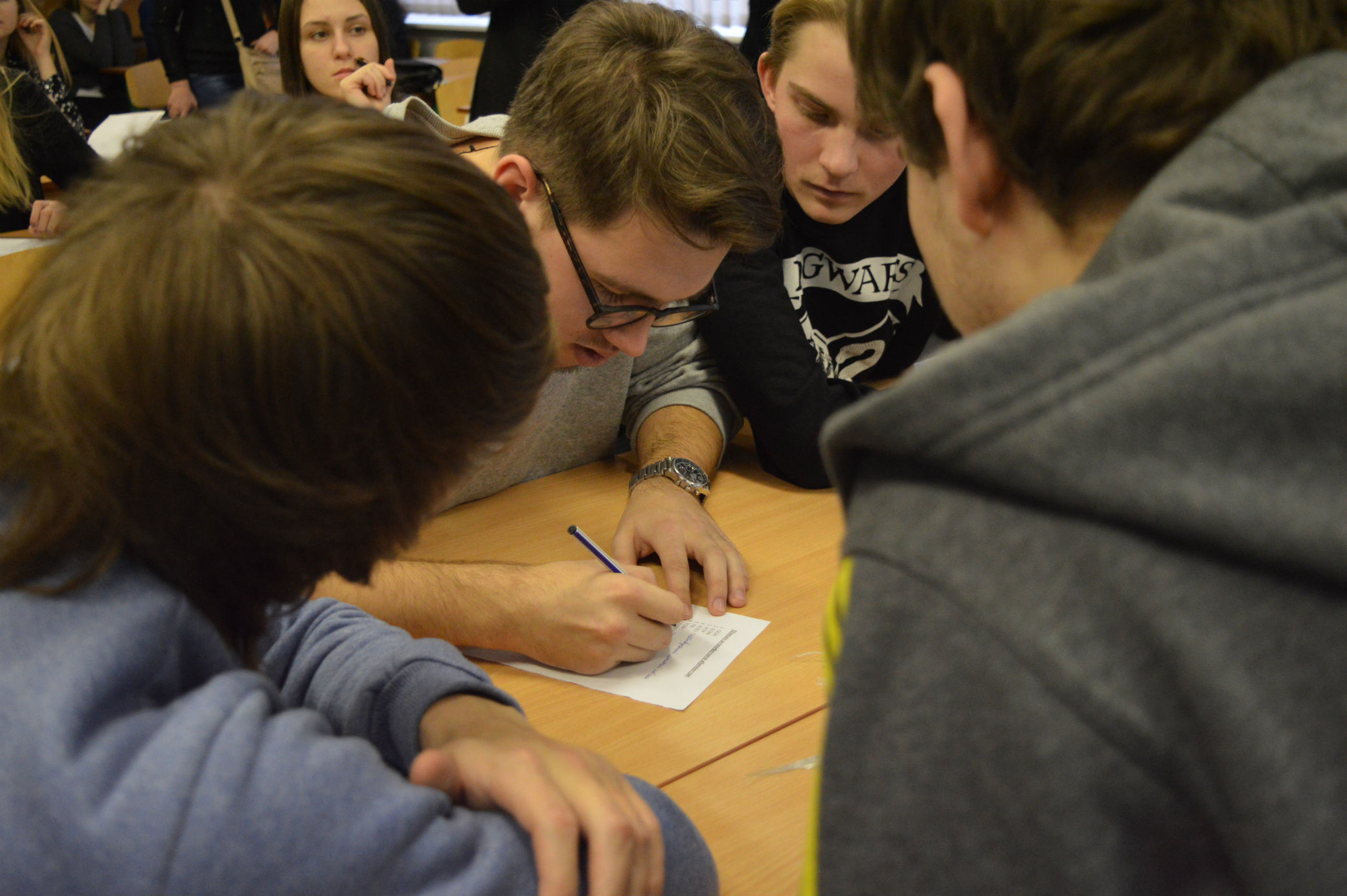 «Ми хотіли поєднати розумову працю й розваги. Саме для цього до інтелектуальних завдань ми додали суперництво між хлопцями та дівчатами, адже це вічне питання, хто розумніший, чоловіки чи жінки?» – коментує організаторка заходу, голова Наукового товариства ФПМВ Олександра Гондюл.