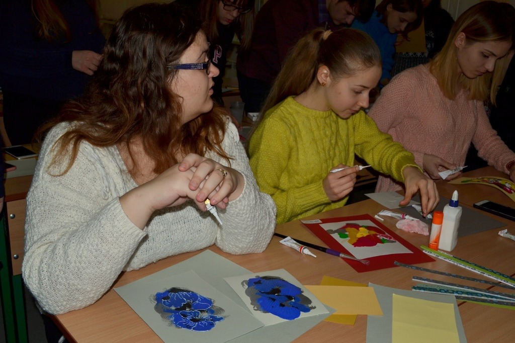 6 грудня Київський університет імені Бориса Грінченка відзначив своє 155-річчя. Цікавими майстер-класами, тренінгами і ворк-шопами запам’ятався цей день для студентів та викладачів вишу. Представники різних кафедр та підрозділів університету ділилися своїми знаннями та уміннями з усіма охочими.Університетський коледж організував захід під назвою «Майстер-клас із виготовлення авторських листівок «Монотипія – барвистий світ фантастичних візерунків»».