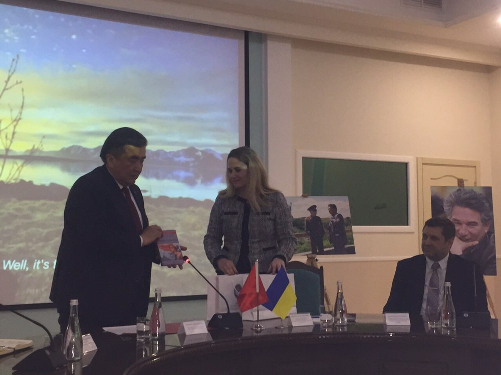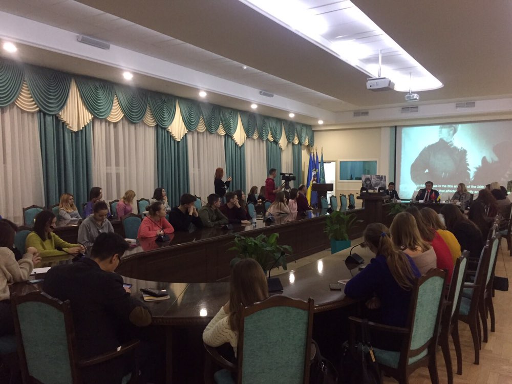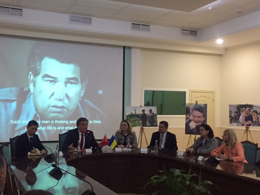 Шановний гість, Надзвичайний і Повноважний Посол Киргизької Республіки в Україні, Ж.Ш.Шаріпов розповів студентстській аудиторії про значення постаті Чингіза Айтматова для світової культури. Перекладач М.С.Васьків і модератор зустрічі доцент О.А.Хамедова змогли зацікавити і студентів, і викладачів творчістю видатного киргизького письменника. Тепер буде нагода прочитати його твори, адже кілька збірок перекладів Посольство Киргизької Республіки подарувало нашій бібліотеці. У заключному слові проректор Н.М.Віннікова висловила сподівання на подальшу співпрацю з Посольством Киргизької Республіки.