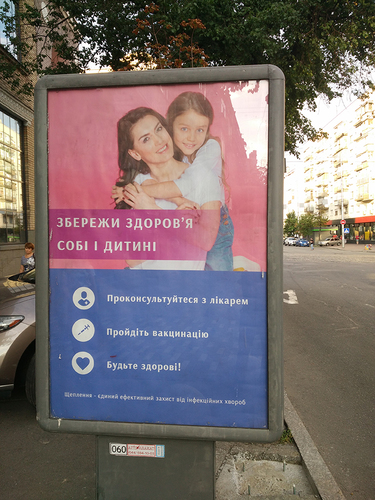 Третьою рекламною соціальною кампанією стала тема вакцінації. Рекламні макети були розміщені на білбордах та сіті-лайтах Києва. Старший викладач кафедри реклами та зв’язків з громадськістю Шиян Віктор Олександрович разом із студентами, які допомагали в розробці рекламних кампаній, отримали Подяки від Валентини Григорівни Гінгзбург – директора Департаменту охорони здоров’я КМДА.