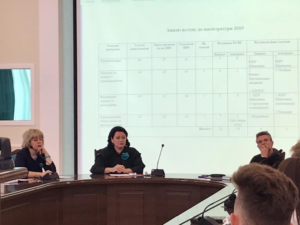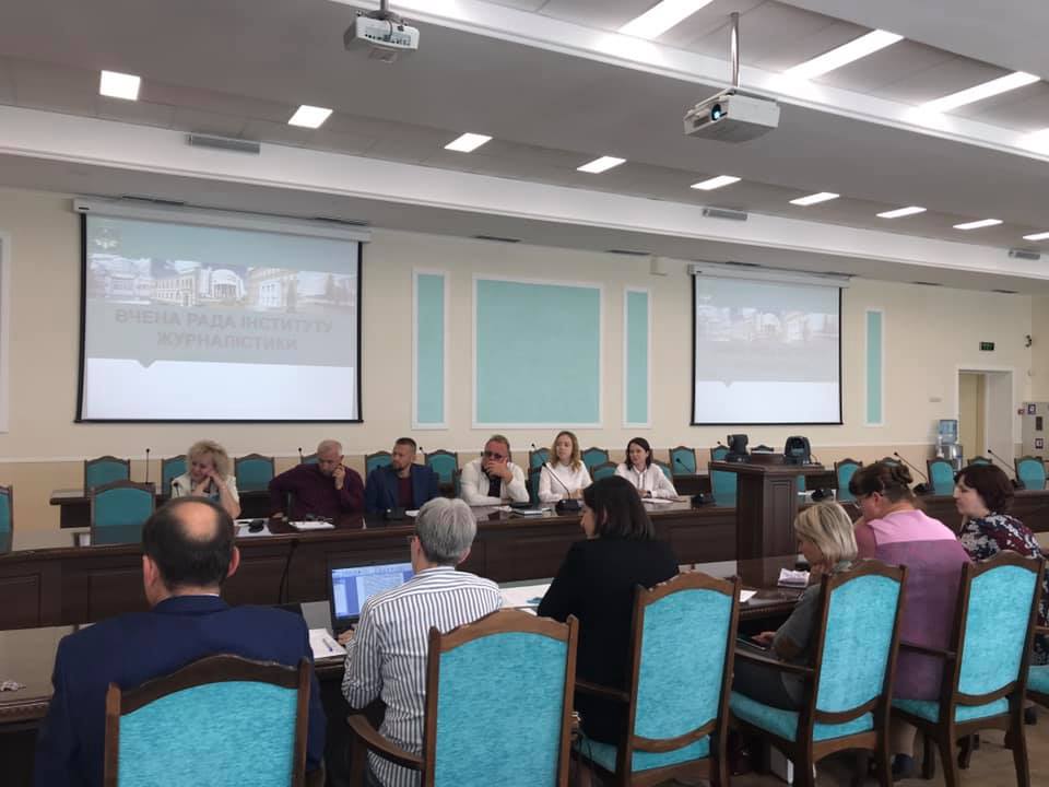 17 вересня 2019 р. відбулося засідання Вченої ради Інституту журналістики. Засідання відбувалось під головуванням Г. В. Горбенко, директора Інституту журналістики, кандидата педагогічних наук, доцента, відповідно до порядку денного. Із запрошених гостей був присутній О. Б. Жильцов, проректор з науково-методичної та навчальної роботи, кандидат педагогічних наук, доцент.