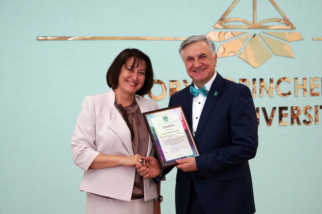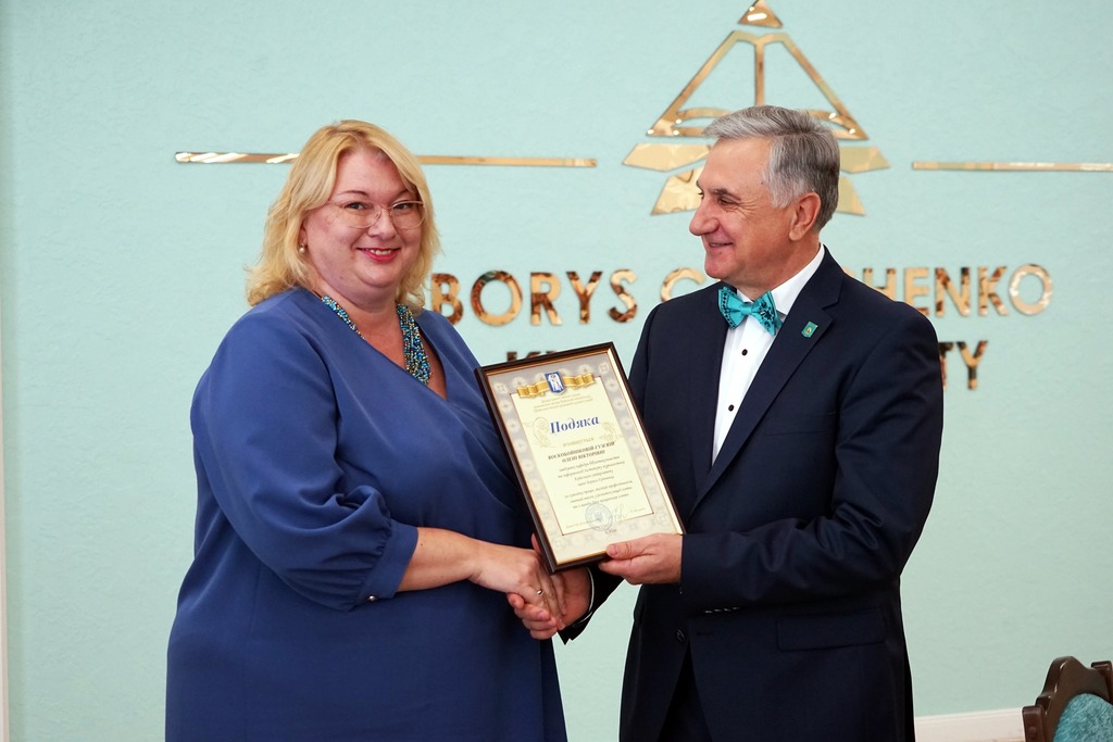 Також Департамент нагородив подякою за сумлінну працю, високий професіоналізм, значний внесок у розвиток вищої освіти завідувачку кафедри бібліотекознавства та інформології – Олену Вікторівну Воскобойнікову-Гузєву.